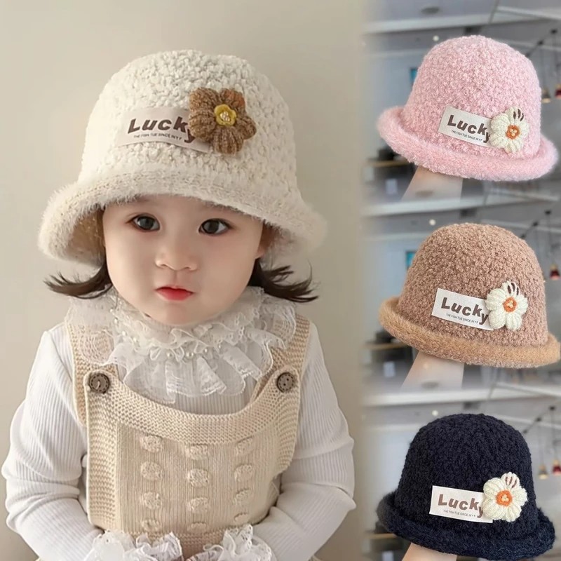 女宝宝帽子秋冬款韩版洋气婴儿针织水桶帽冬季女童时尚加厚渔夫帽