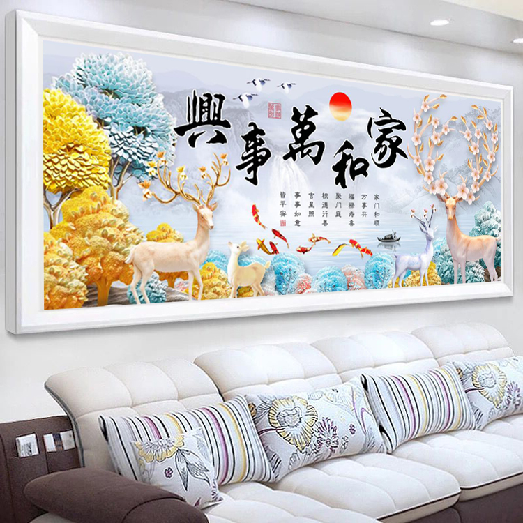 非满钻钻石画家和万事兴麋鹿客厅新款钻石秀山水风景画5D半点粘钻