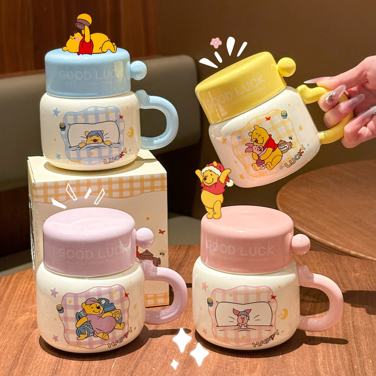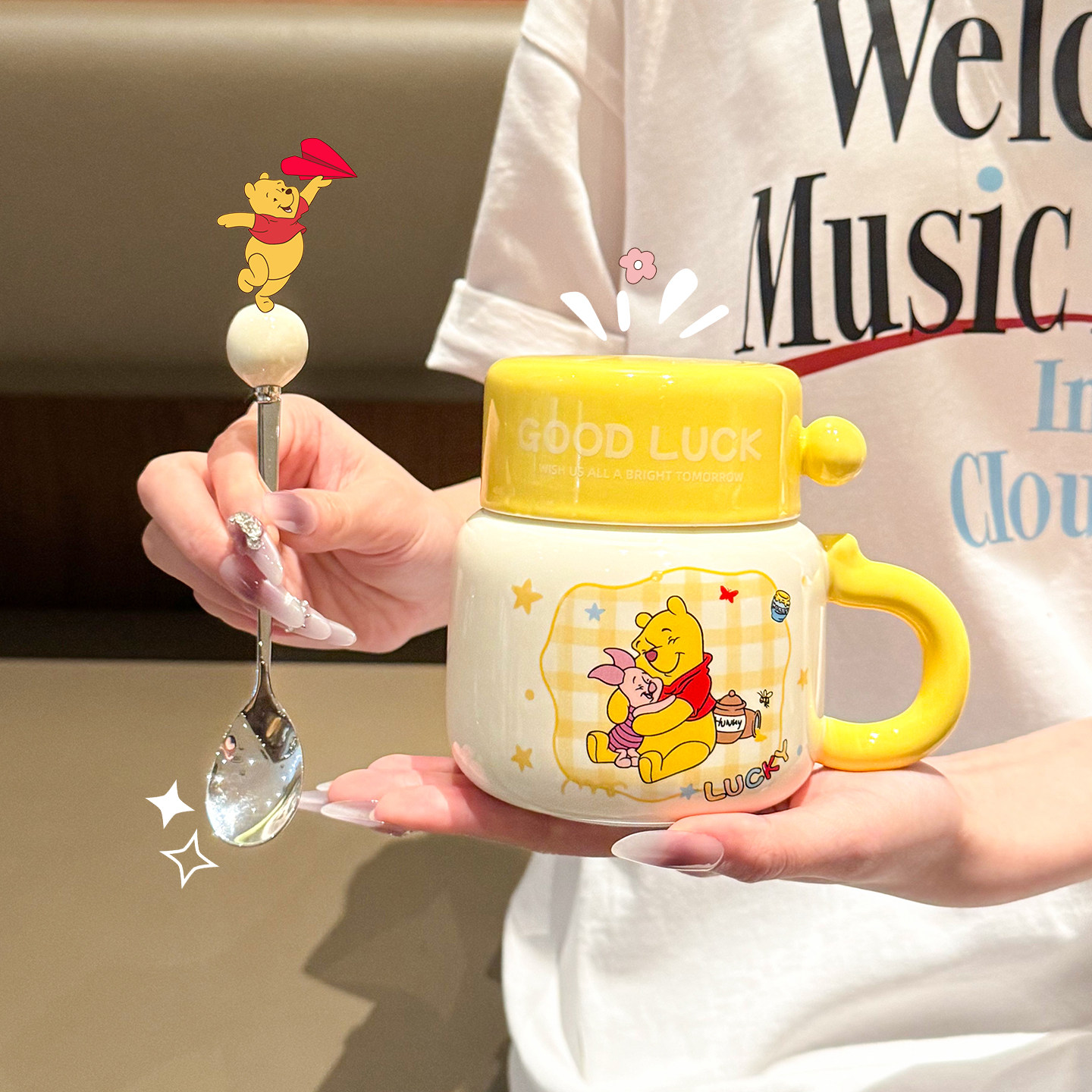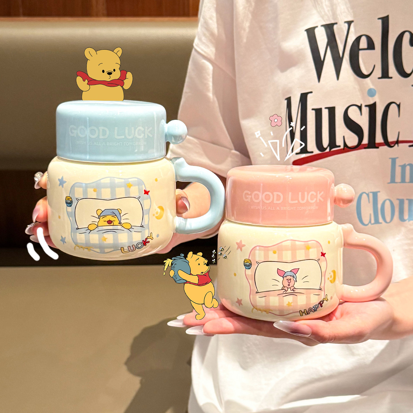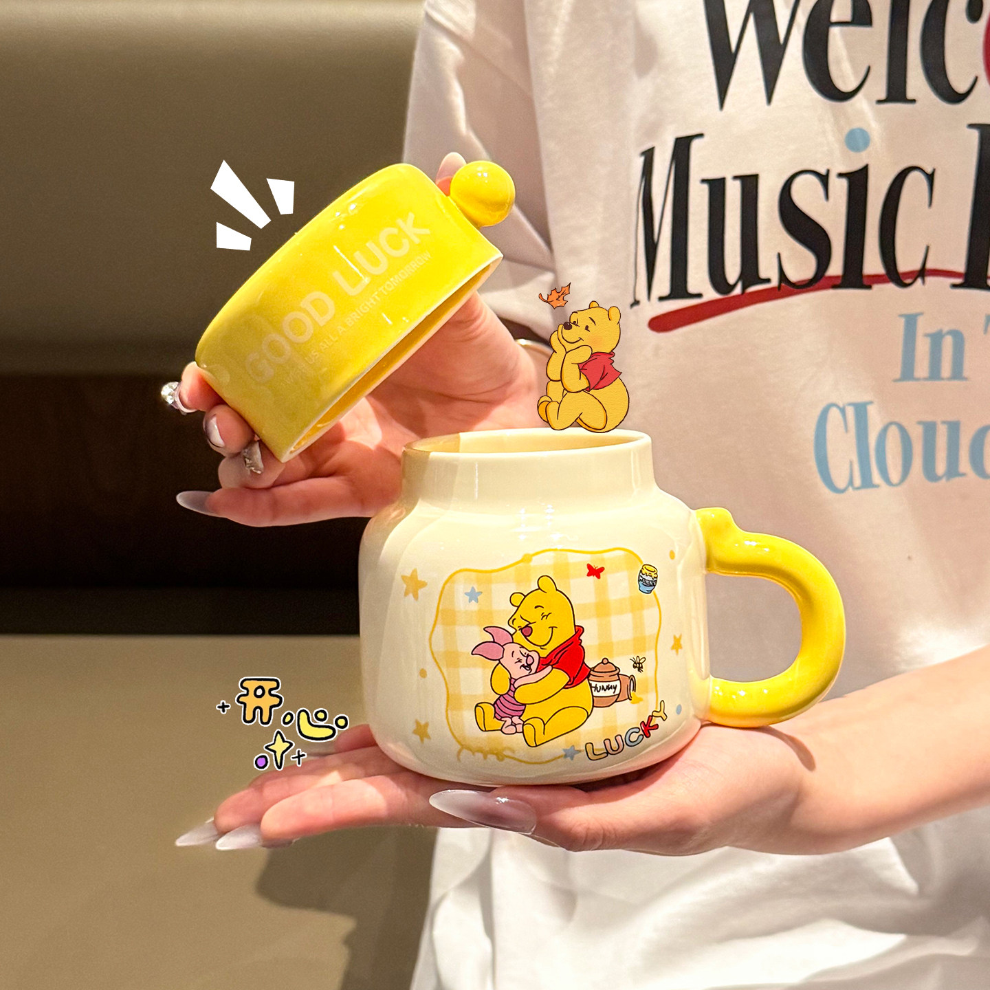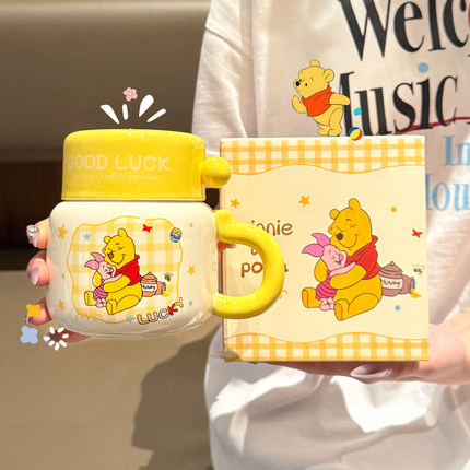 小熊维尼陶瓷水杯带盖大容量马克杯高颜值可爱风情侣专用水壶杯子