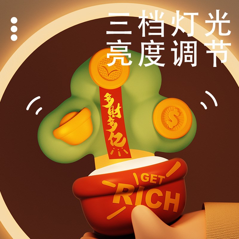 创意摇钱树小夜灯摆件家用办公室装饰台灯M卧室拍拍灯送生日小礼