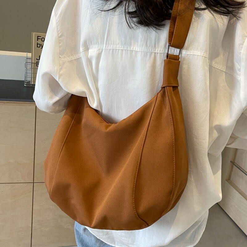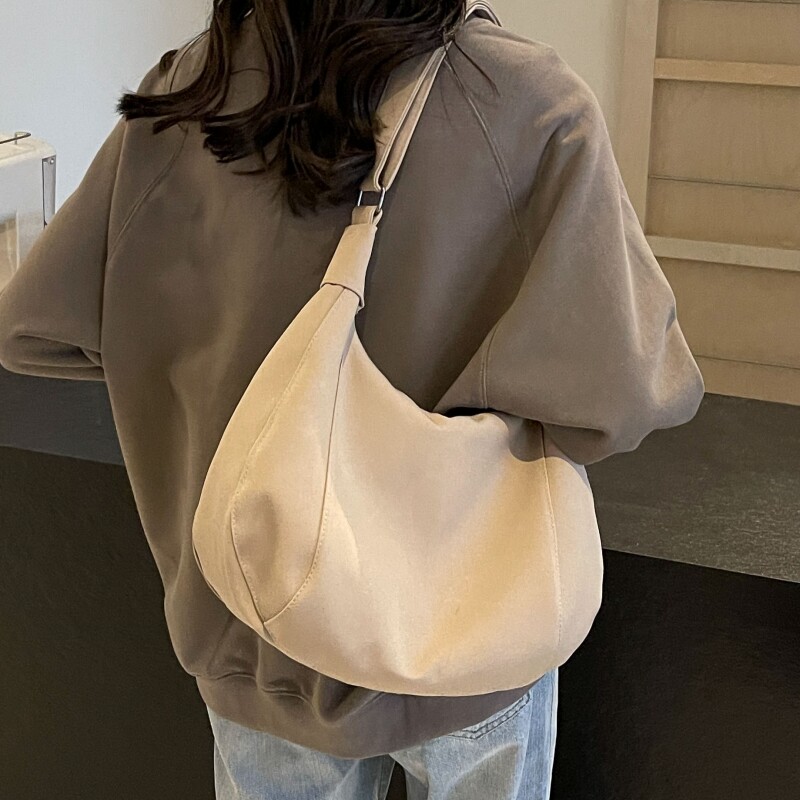 简约大容量斜挎包包女2025新款休闲百搭帆布包通勤上课单肩腋下包