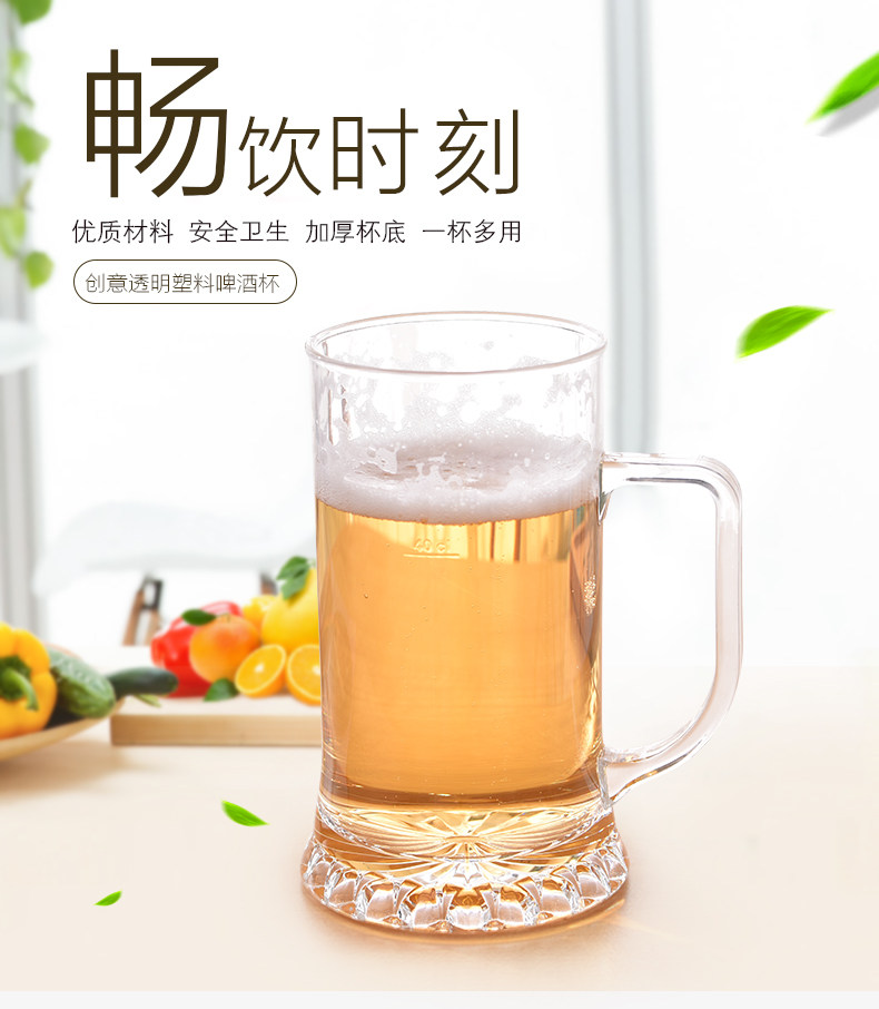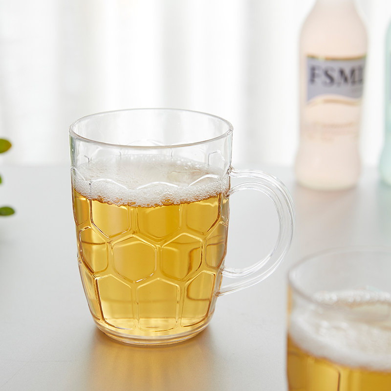 塑料啤酒杯亚克力防摔耐高温PC大容量扎啤杯带手柄菠萝竖纹杯冷饮