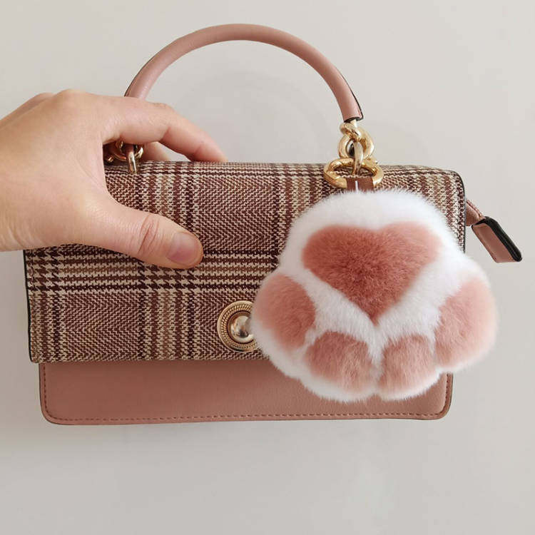 小猫爪獭兔毛皮草迷你小包挂件汽车钥匙扣挂饰发财绿色可爱爪子女