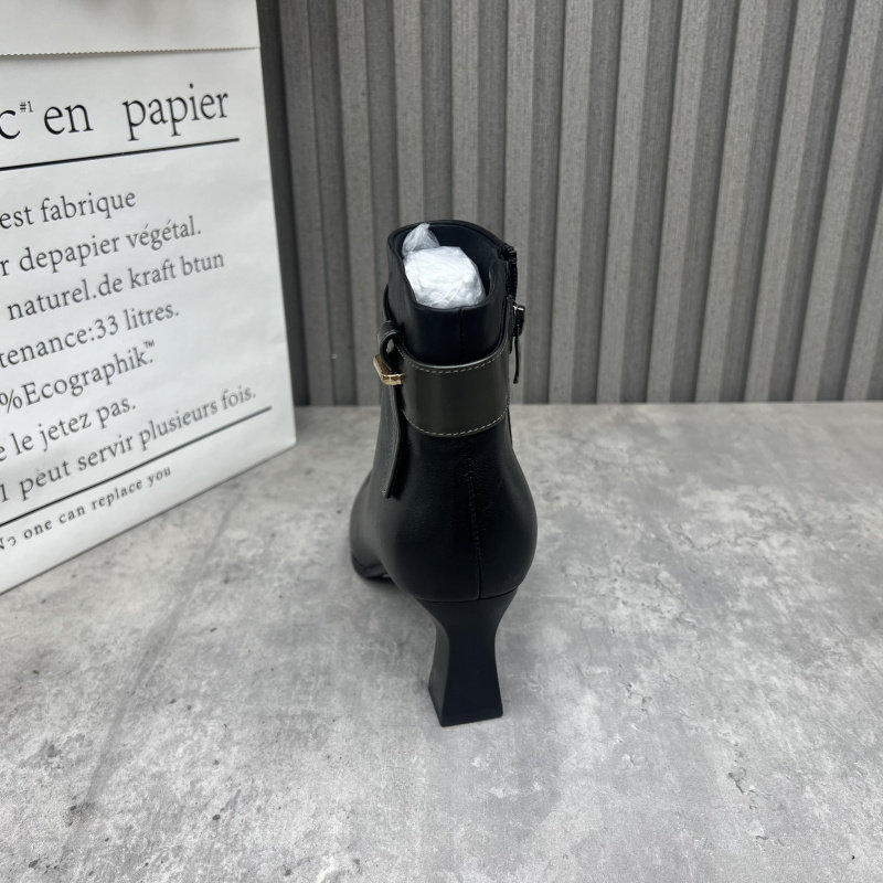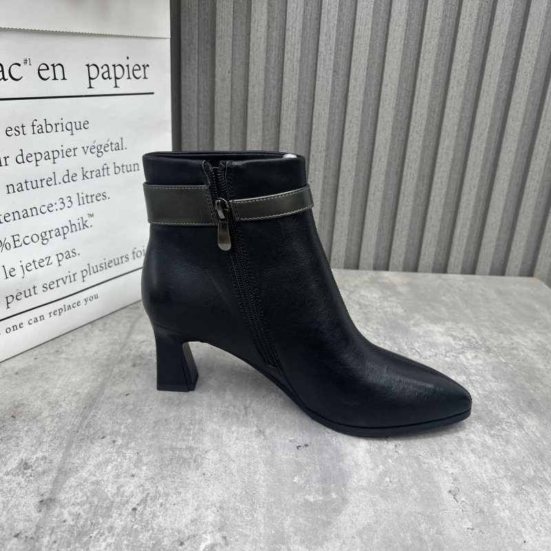 清仓断码处理真皮女靴2024冬季新款尖头粗跟高跟侧拉链时装女短靴