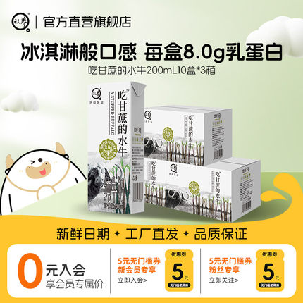 【新鲜日期】认养吃甘蔗的水牛奶4.0蛋白200ml*10盒*3箱早餐牛奶