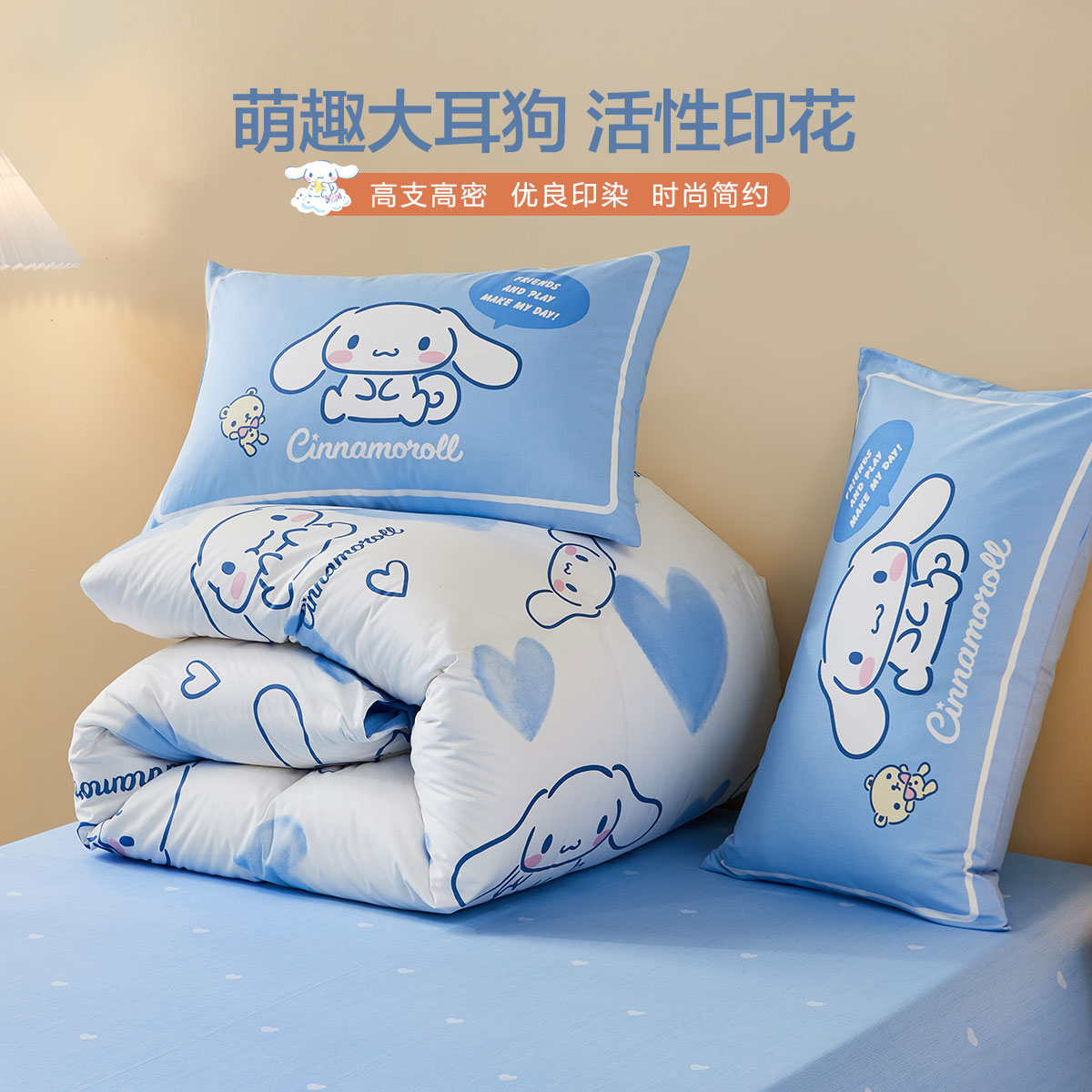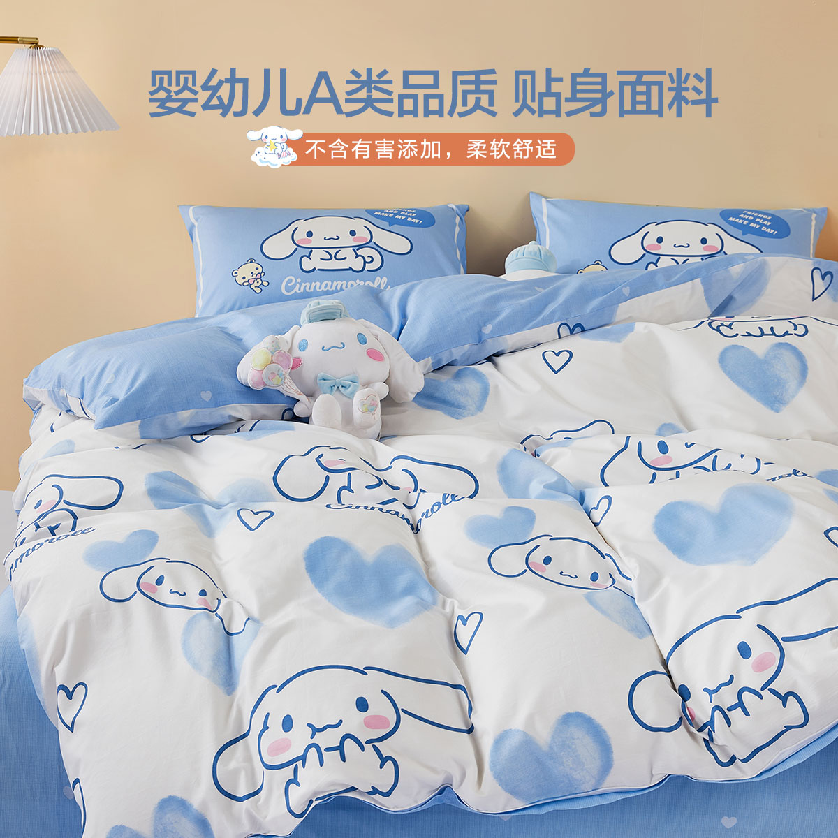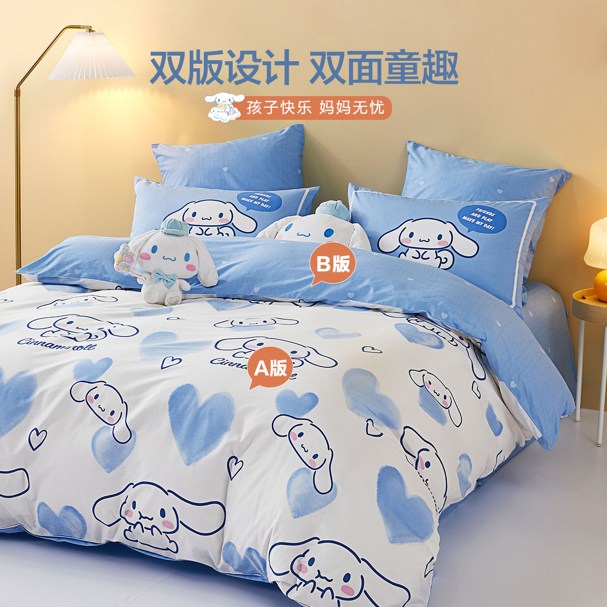 水星家纺四件套全棉抗菌大耳狗儿童学生宿舍床单被套件床品三件套