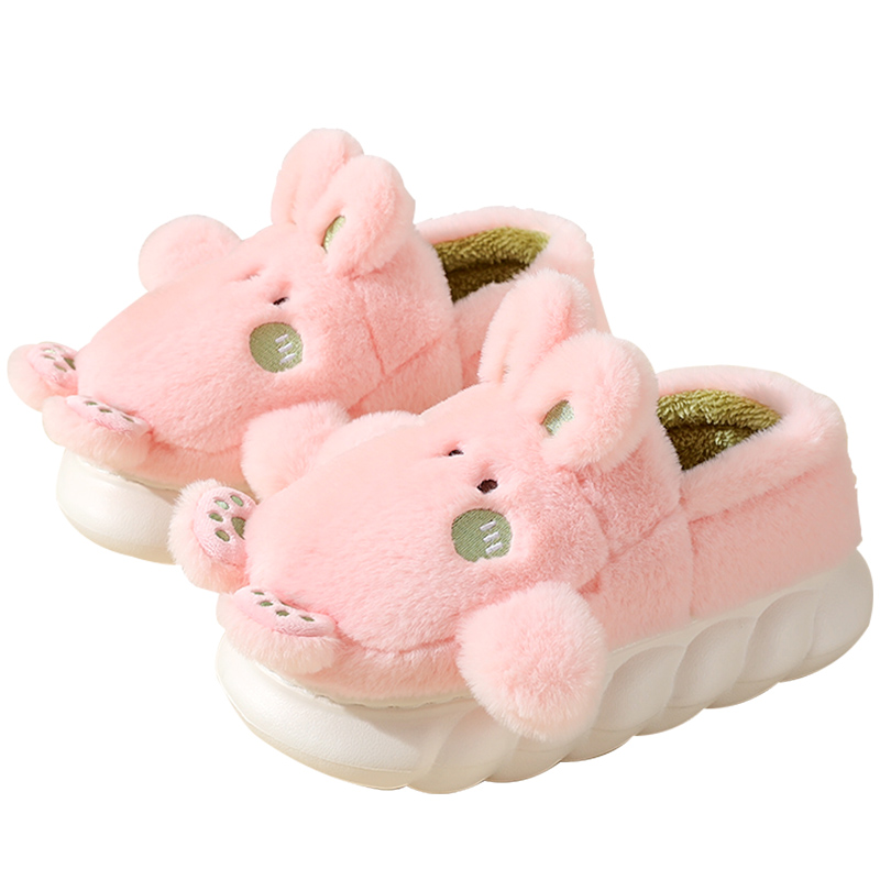 高跟棉拖鞋女厚底包跟室内卡通可爱兔子拖鞋冬毛茸茸保暖棉鞋防寒