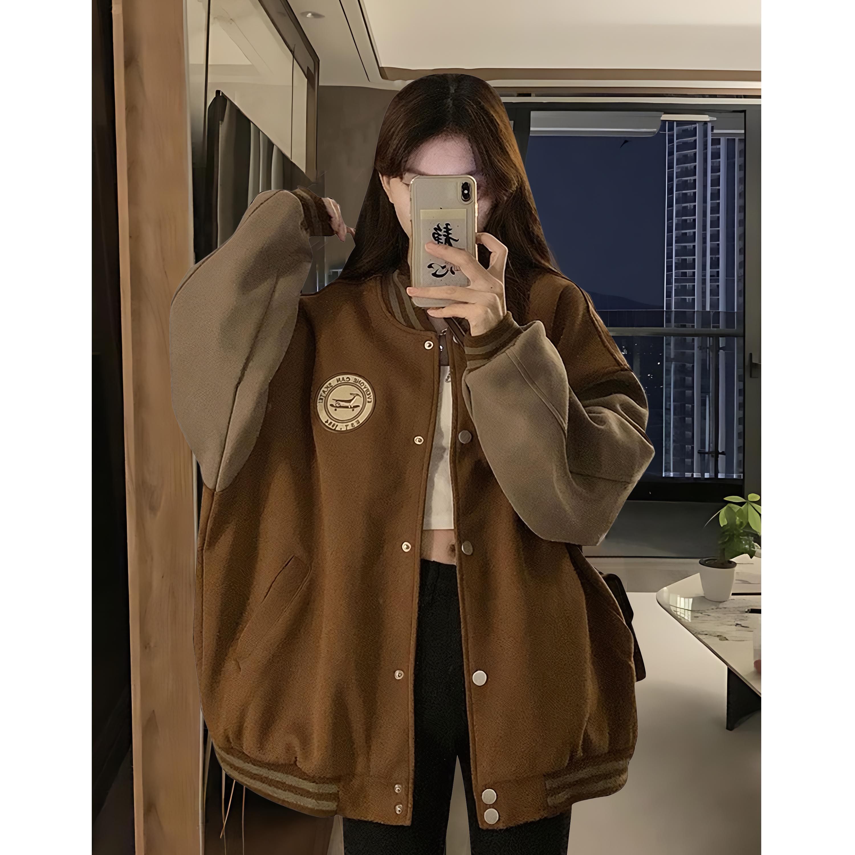 早秋薄款外套女不加绒2024新款宽松学生棒球服拼色潮流加绒加厚冬