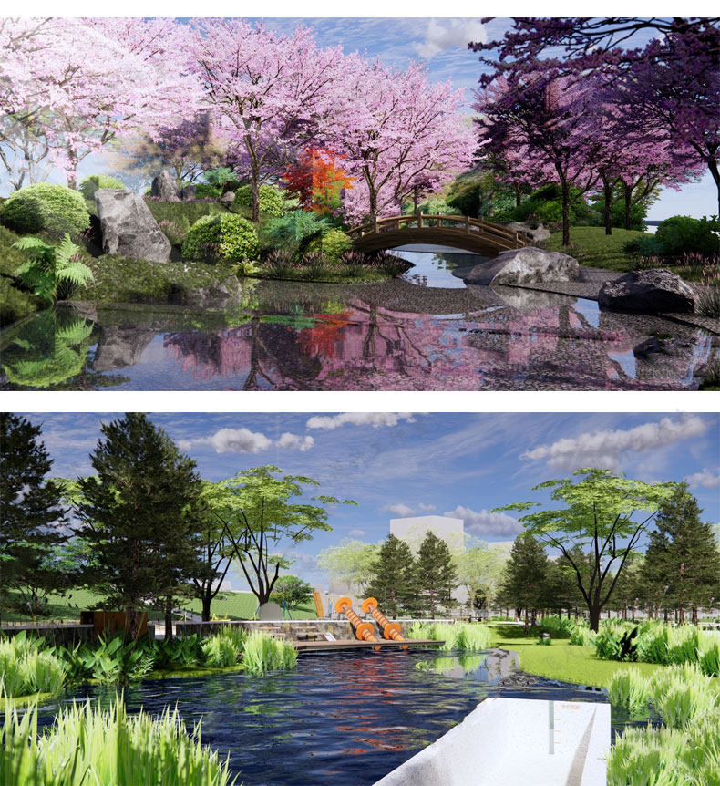 滨水湿地雨水花园海绵城市生态公园野趣滩涂景观草图大师SU模型库