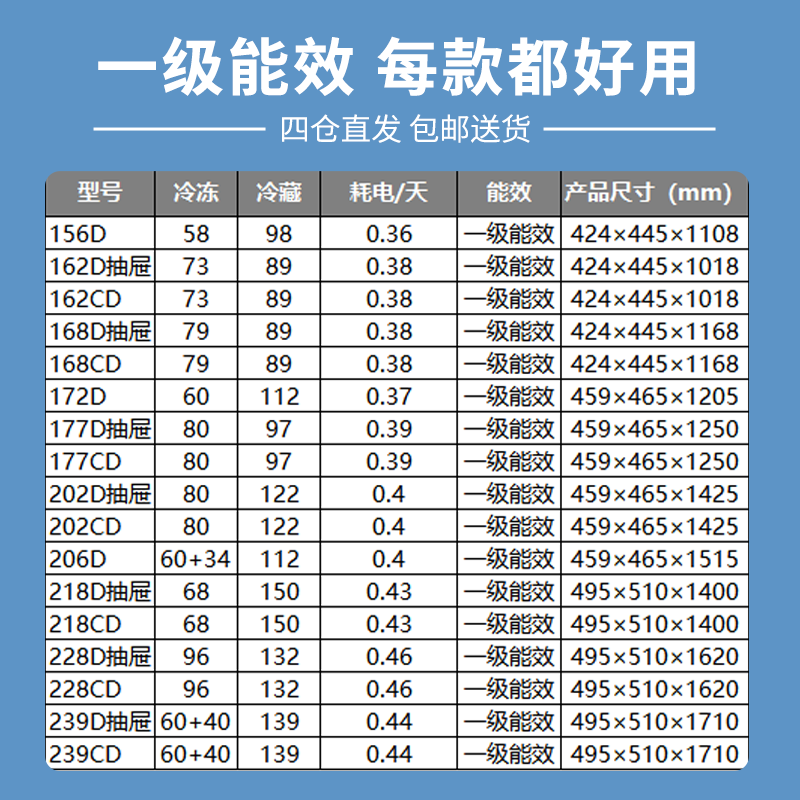 【铜芯节能王】志高中小型冰箱家用宿舍出租屋用双门三门一级节能