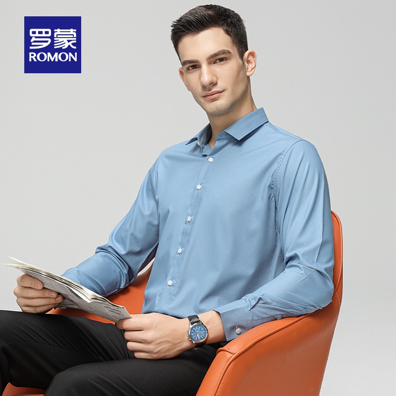 罗蒙含桑蚕丝长袖商务易打理衬衫