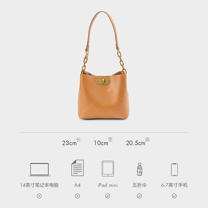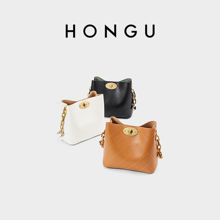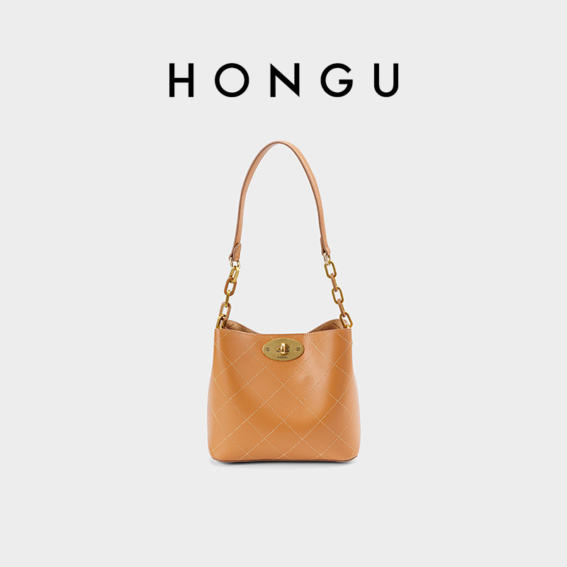 红谷女包2024新款百搭手提单肩包女士质感真皮水桶包女H5175818