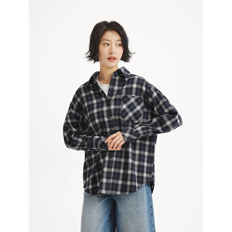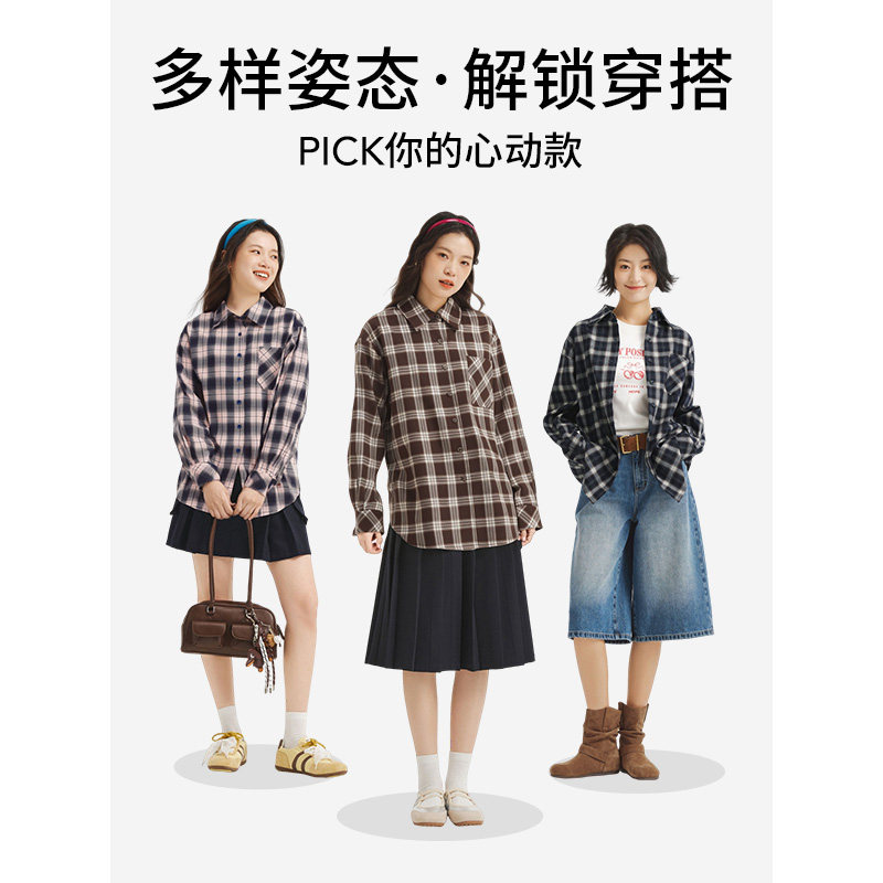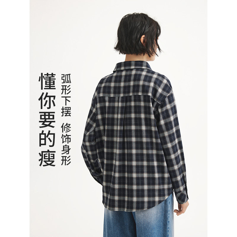 热风女士格子长袖衬衫2025年秋季新款休闲宽松版型衬衣轻薄外套