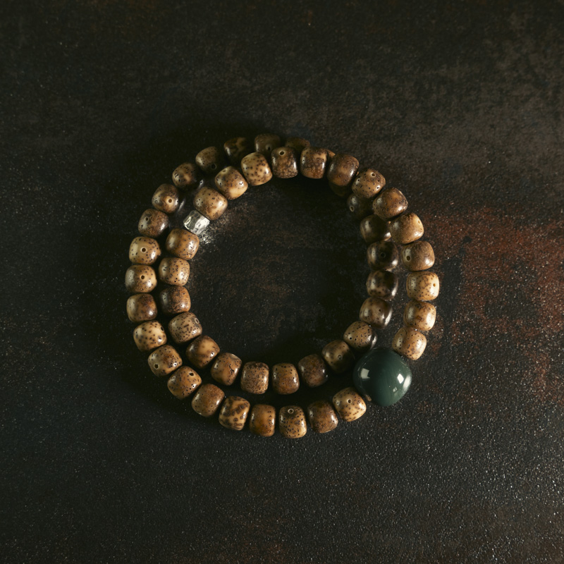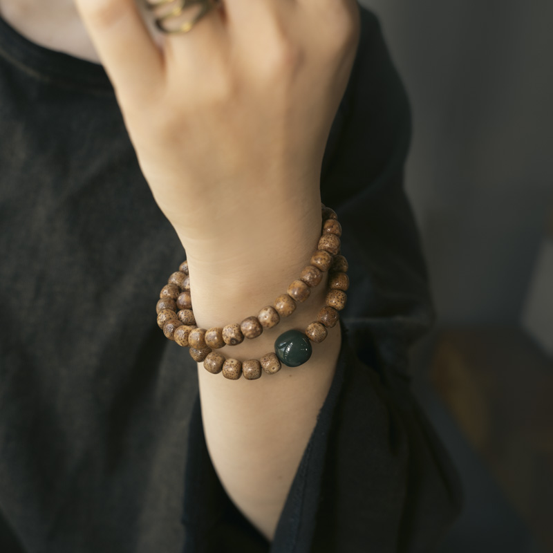 原创复古陈籽星月菩提子手串女 个性民族风文玩佛珠双圈手链男生