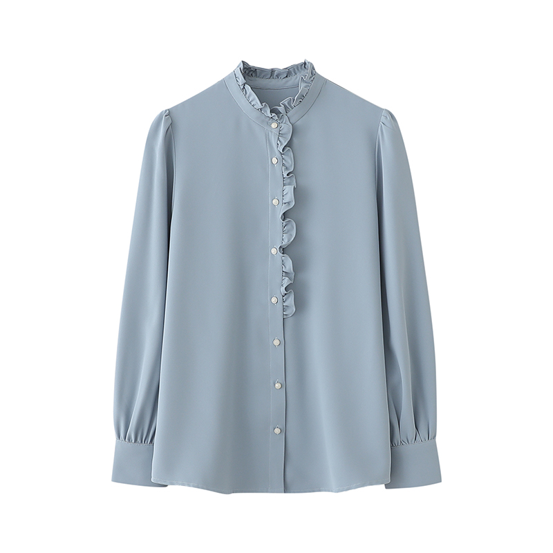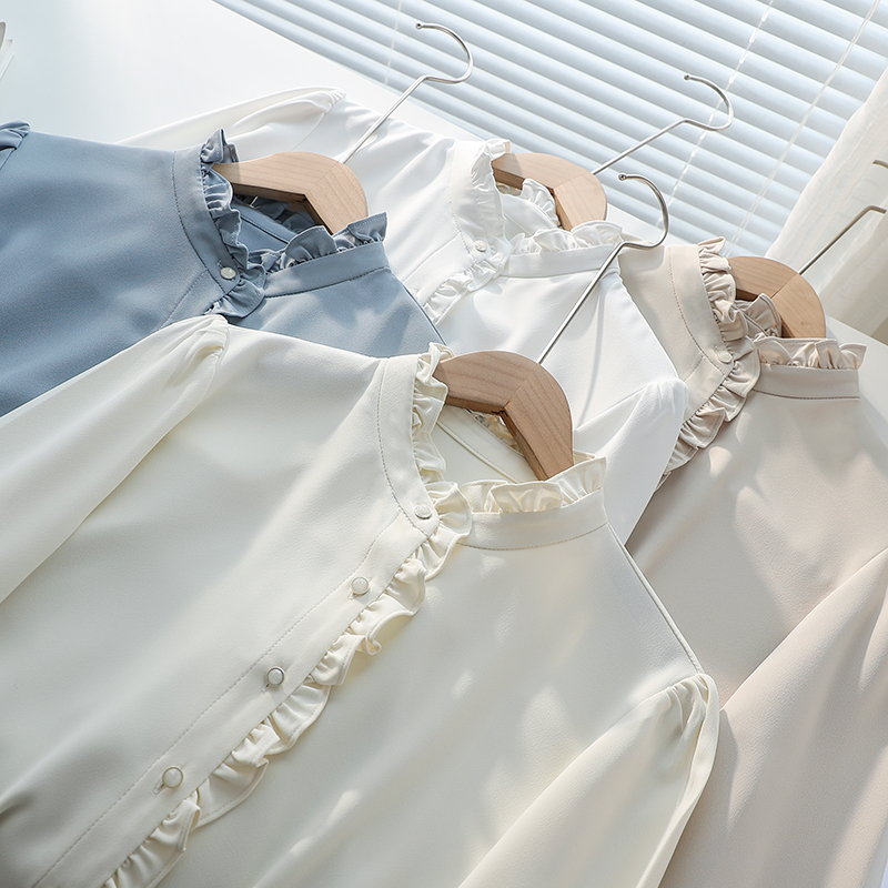 2025春秋新款法式木耳边衬衫白色设计感小众气质长袖立领上衣女