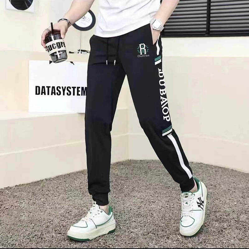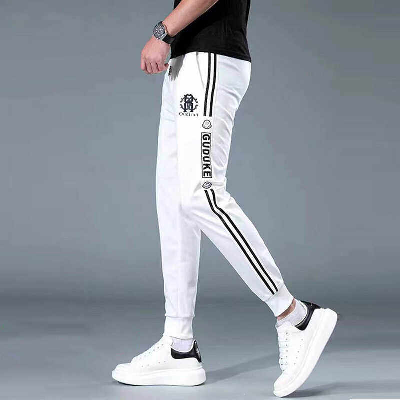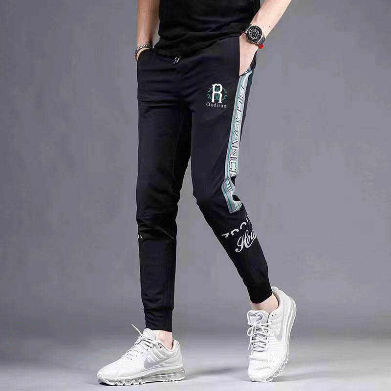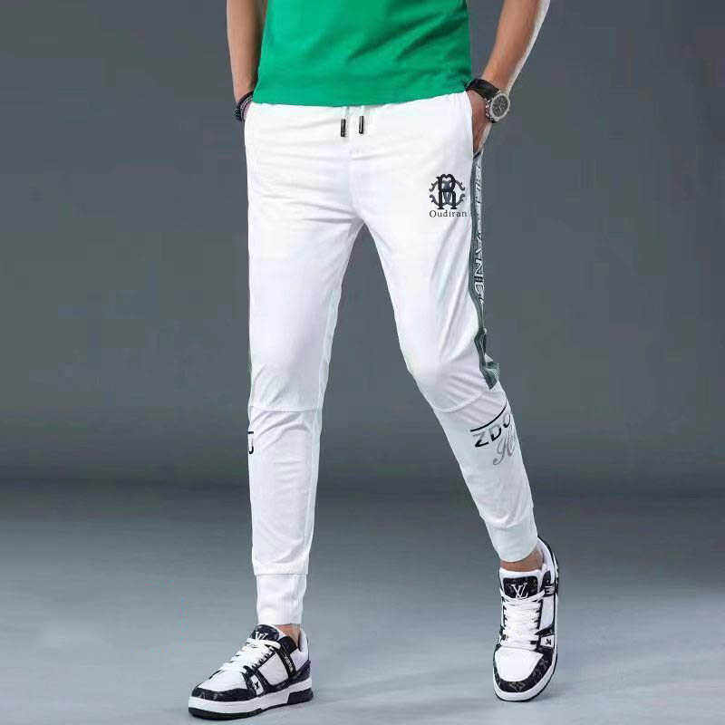 休闲长裤男士夏季冰丝薄款潮流刺绣修身速干小脚裤弹力百搭束脚裤