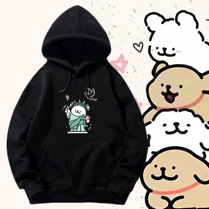 马尔济斯线条小狗胜利女神联动夏男女休闲连帽可定制情侣带帽卫衣