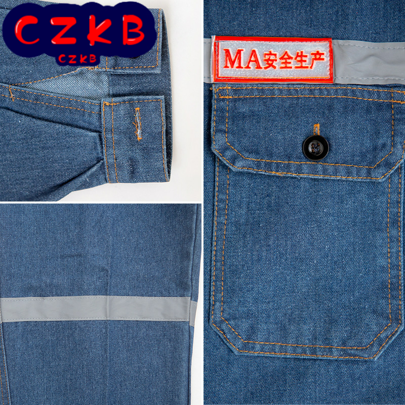 反光条 水洗MA 车间工厂店维修汽修 劳保牛仔工作服套装