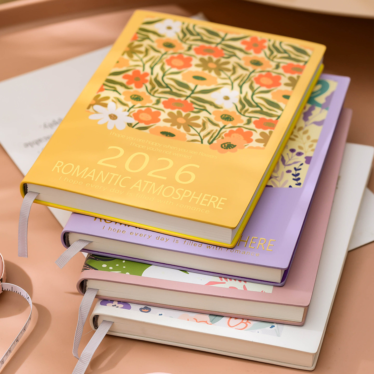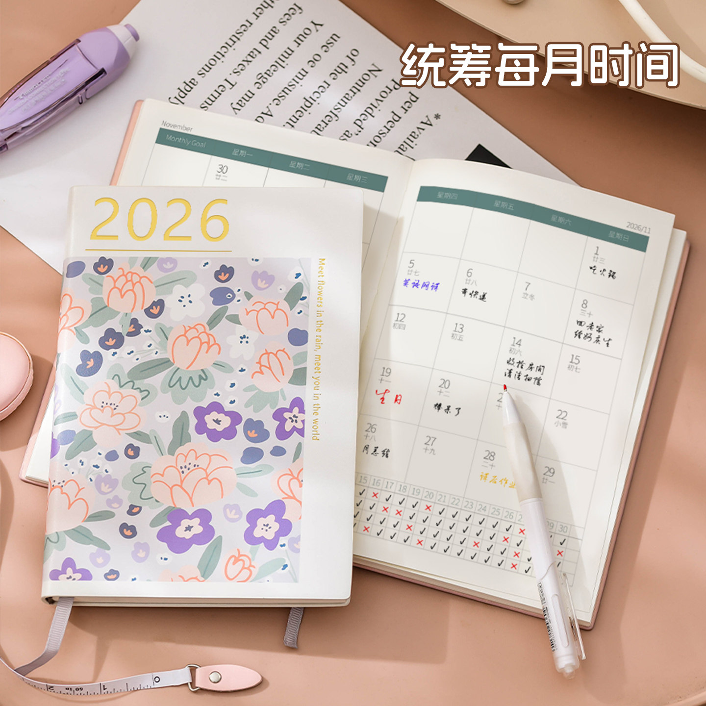 日程本新款2026年周计划本超软皮原创手绘印花A5每日打卡本高颜值高效学习规划时间管理专用笔记本本子小清新