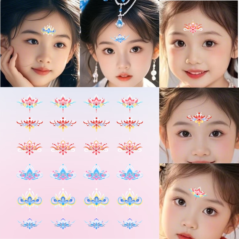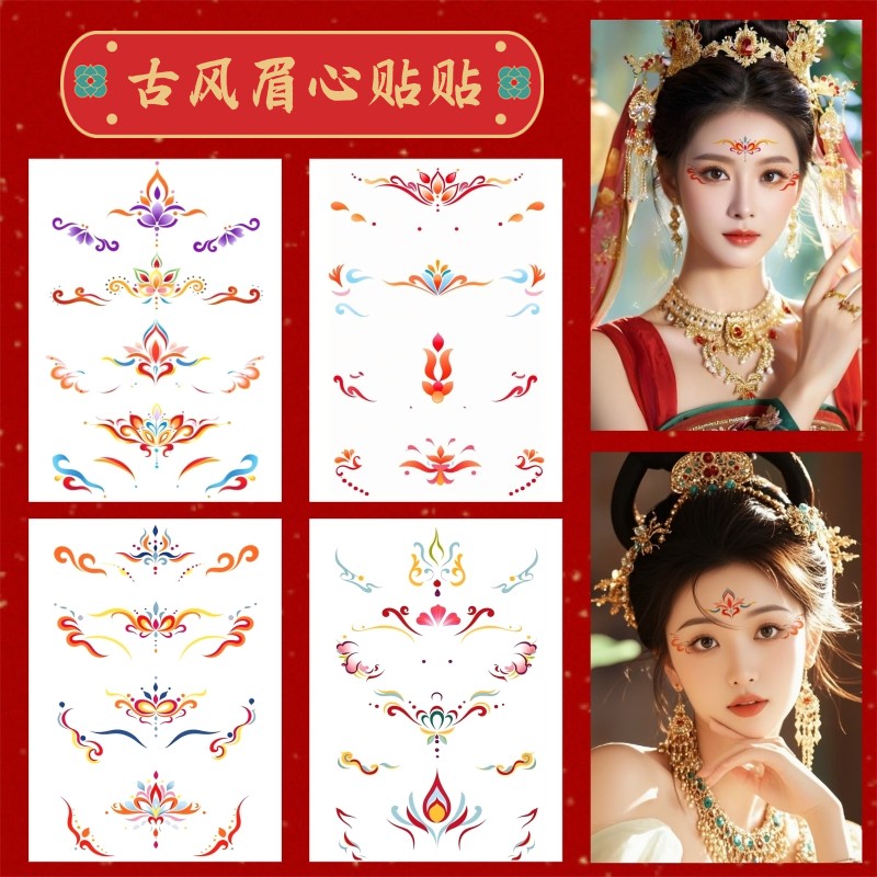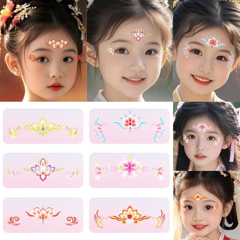 仙女古装额头印花眉心贴汉服古风纹身贴儿童花钿额贴新年妆容脸贴