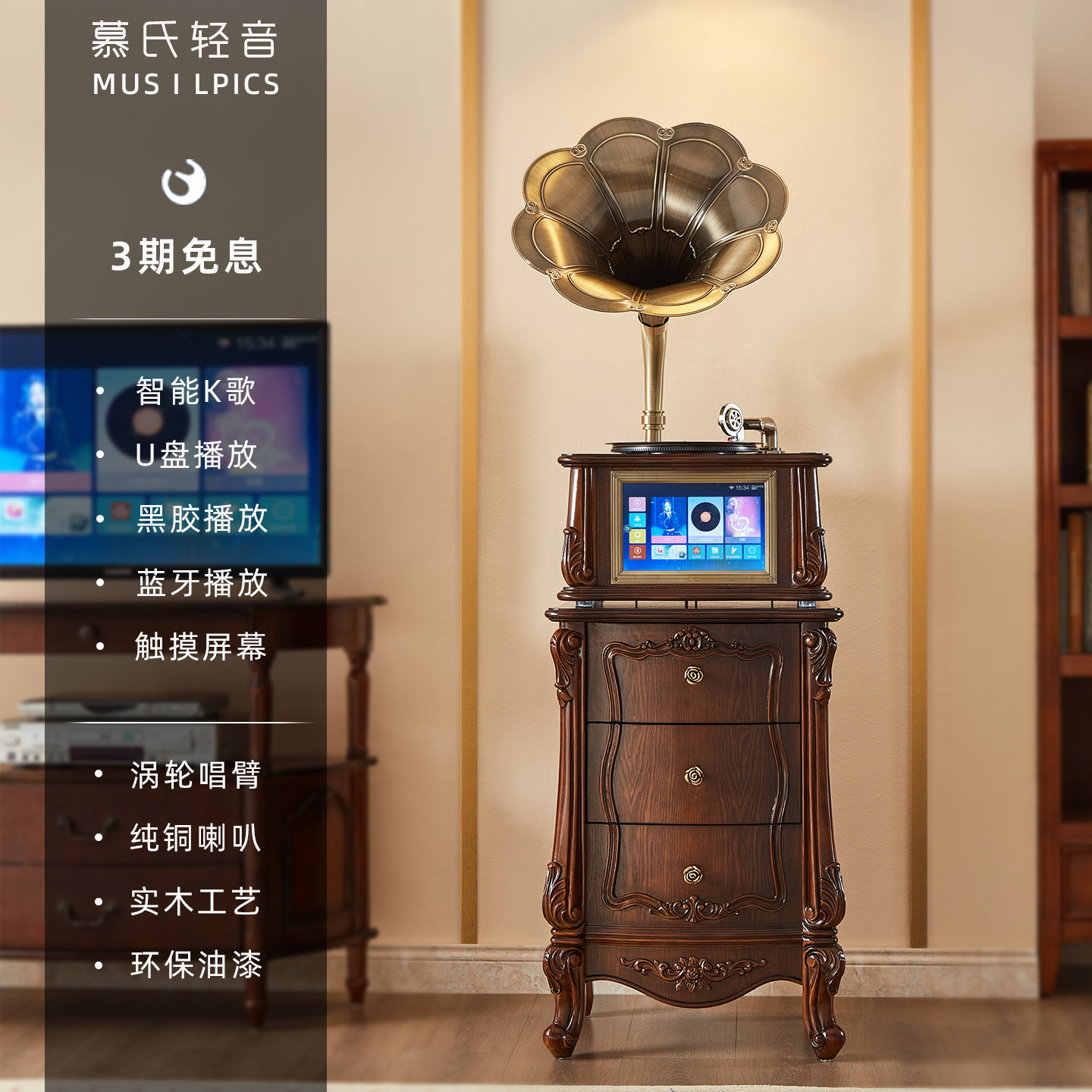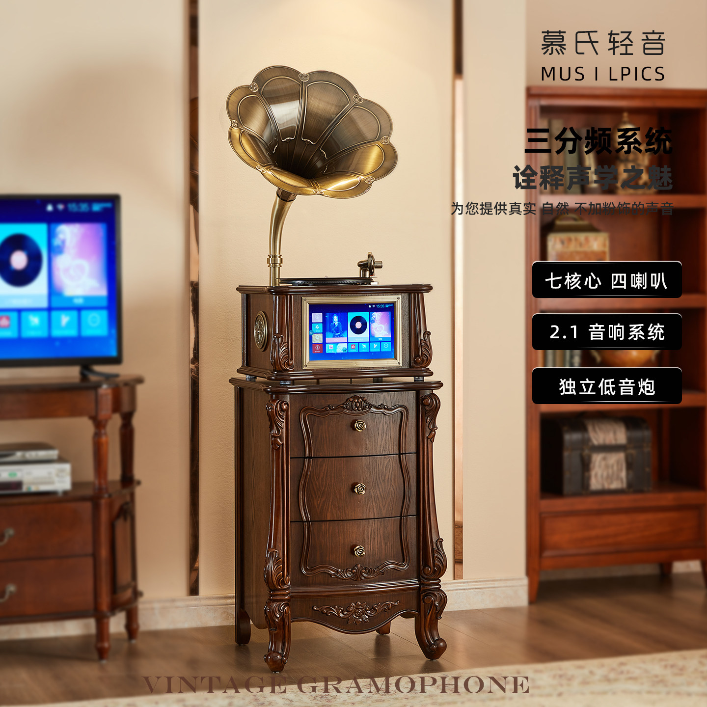 留声机复古客厅欧式装饰摆件k歌多媒体蓝牙音响专业黑胶唱片机