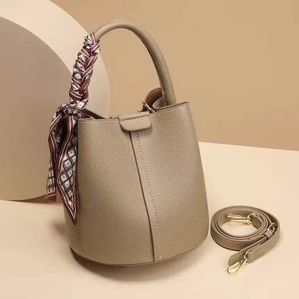 女包新款小众设计荔枝纹高级质感软皮单肩斜挎手提包手机包水桶包