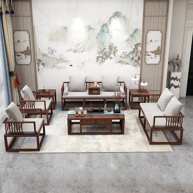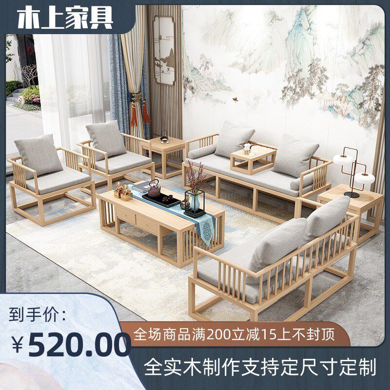 新中式实木沙发组合白蜡木中式简约小户型禅意家具轻奢布艺木沙发