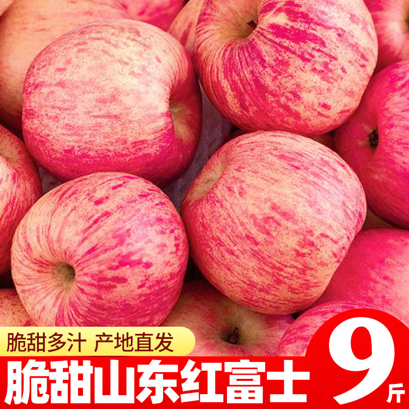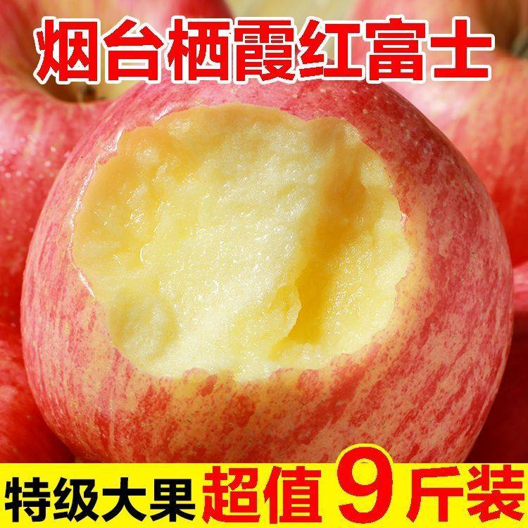 山东烟台苹果栖霞红富士苹果孕妇新鲜水果脆甜汁现摘绿色整箱包邮