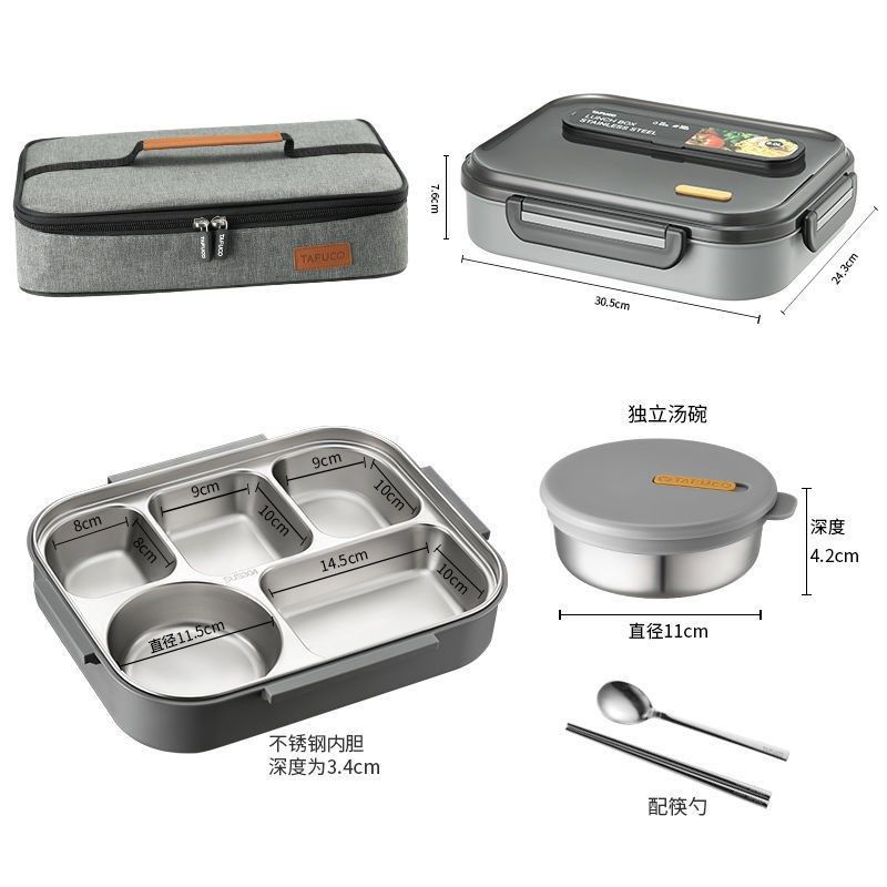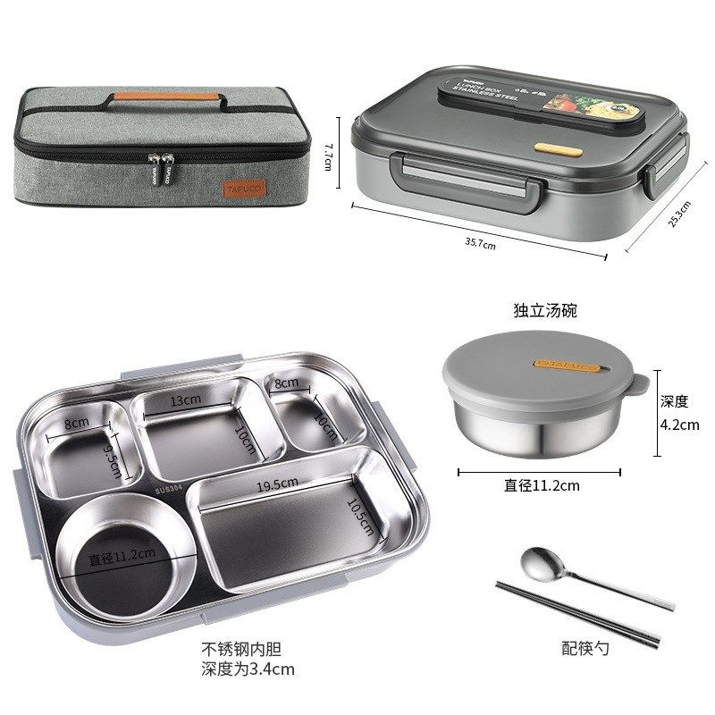 新品日本泰福高餐盘分格带汤碗注水不锈钢饭盒学生分隔便当盒