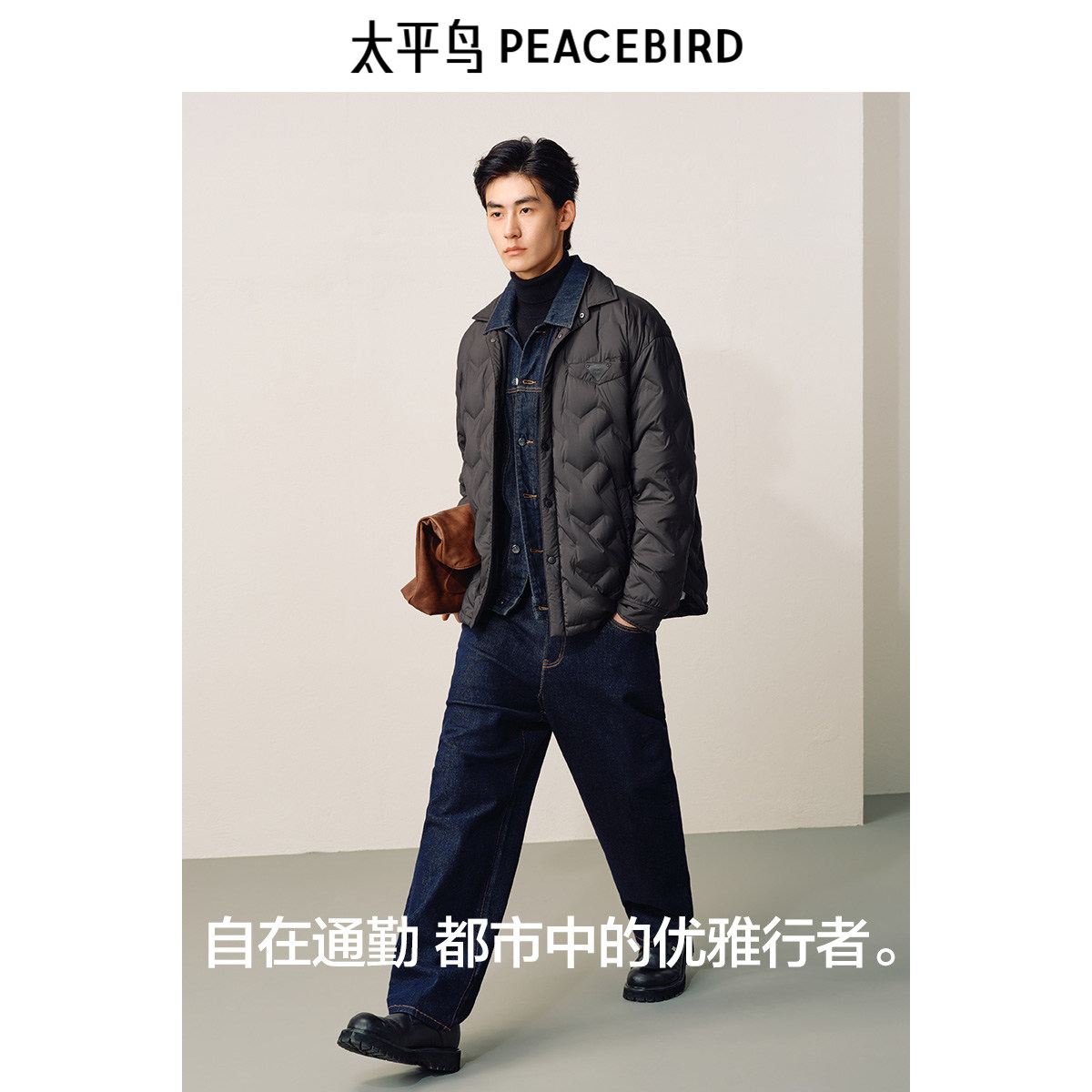 【衬衫式】太平鸟男装秋冬经典款轻薄羽绒服轻便保暖外套翻领