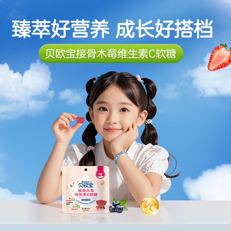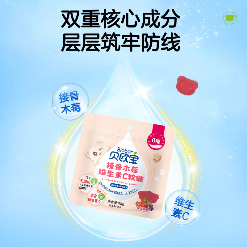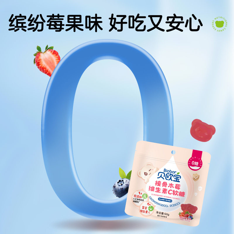 贝欧宝维生素C软糖50g接骨木莓味0糖无添加儿童宝宝营养糖果零食