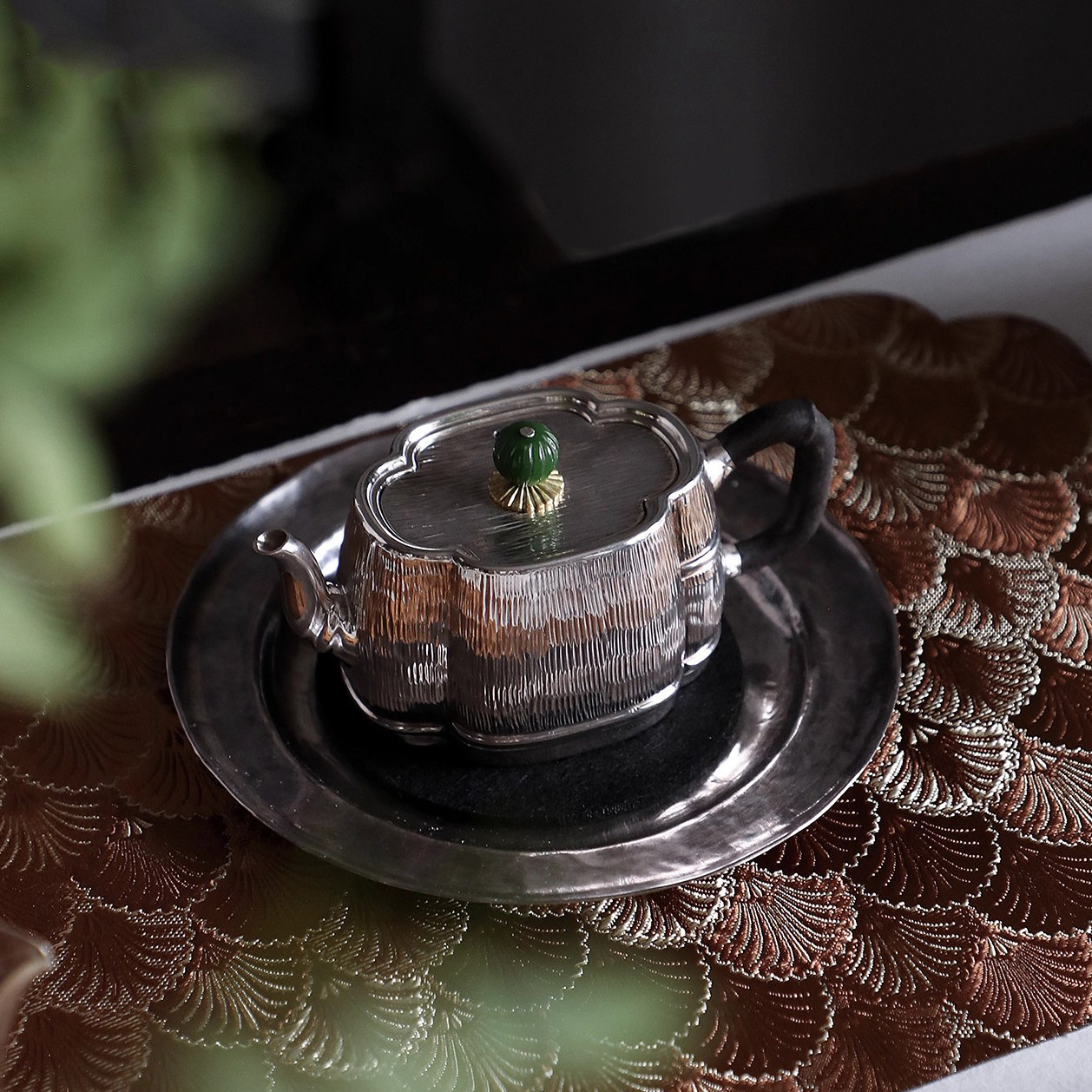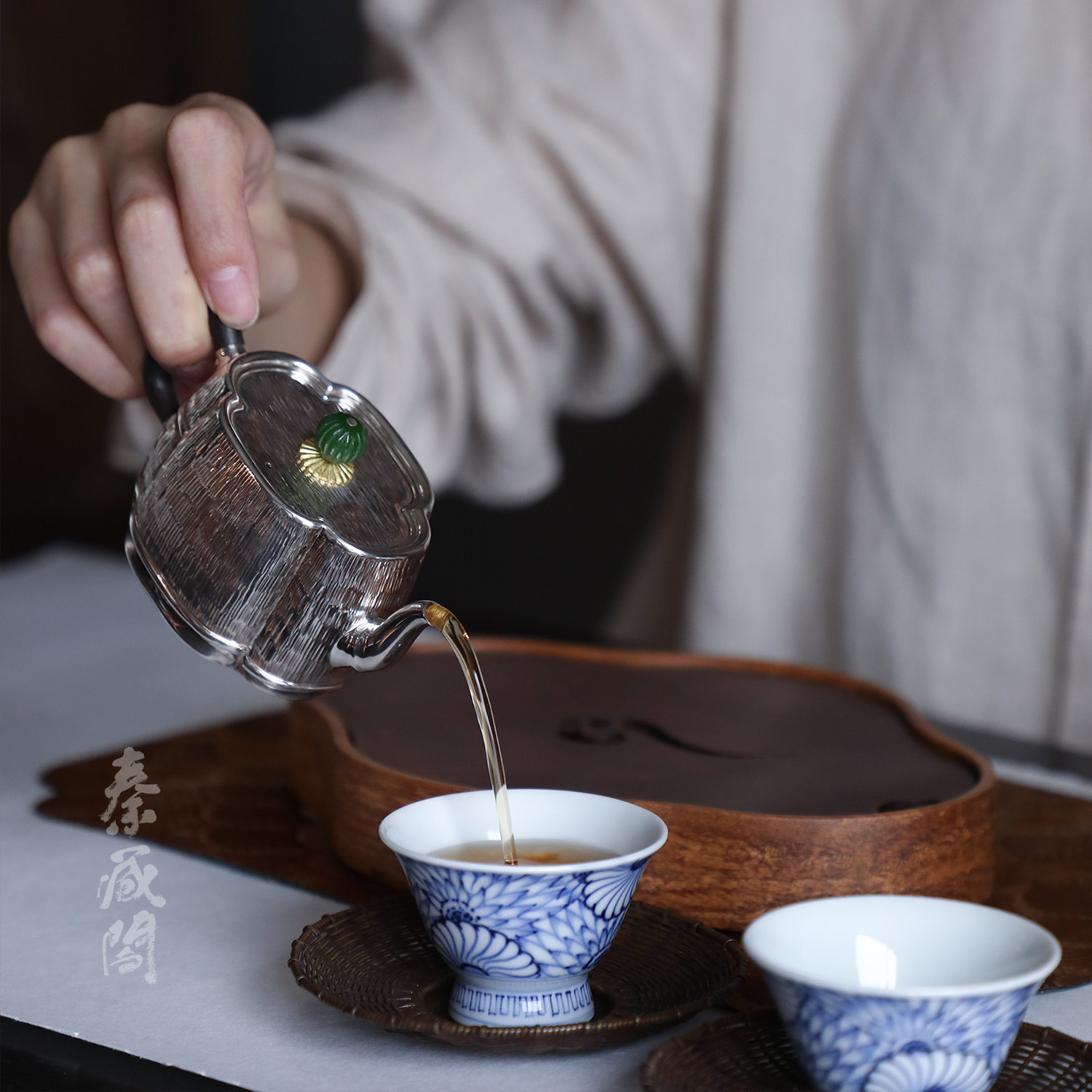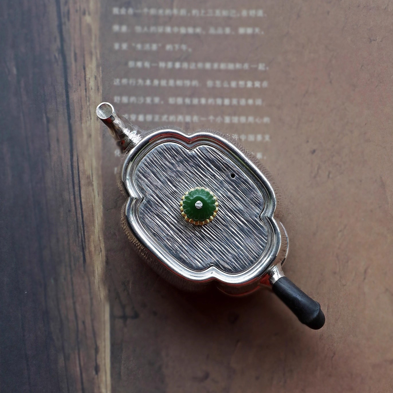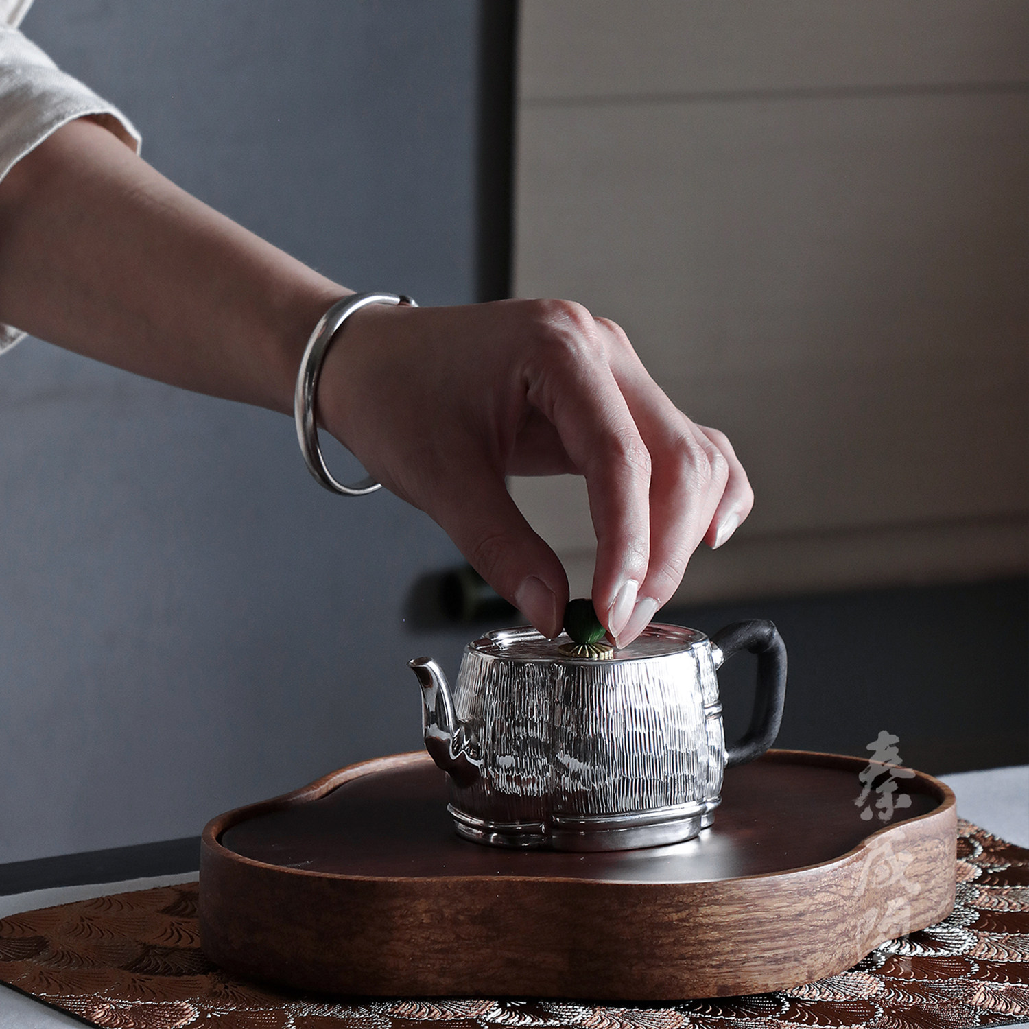 纯银时代木把竹韵泡茶银壶竹节足银999手工银茶壶精致送礼120ml