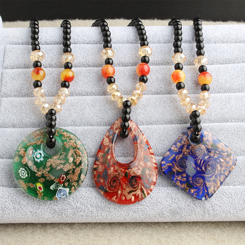 韩版水晶项链女时尚百搭琉璃水滴平安扣长款毛衣链民族风衣服配饰
