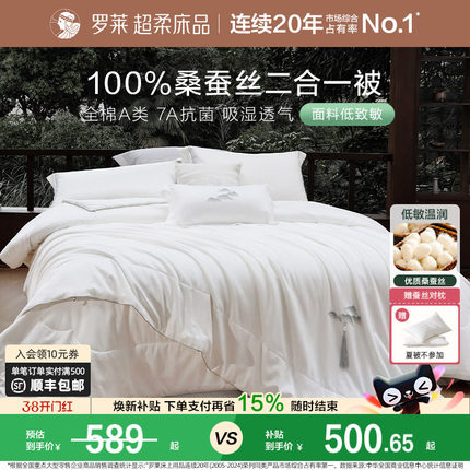 罗莱家纺60s全棉100桑蚕丝春秋被子结婚二合一子母被芯夏凉空调被
