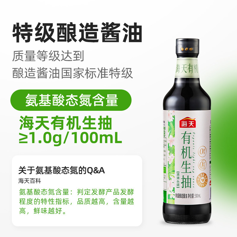 海天有机生抽0添加特级酱油炒菜点蘸凉拌健康调味品玻璃瓶装