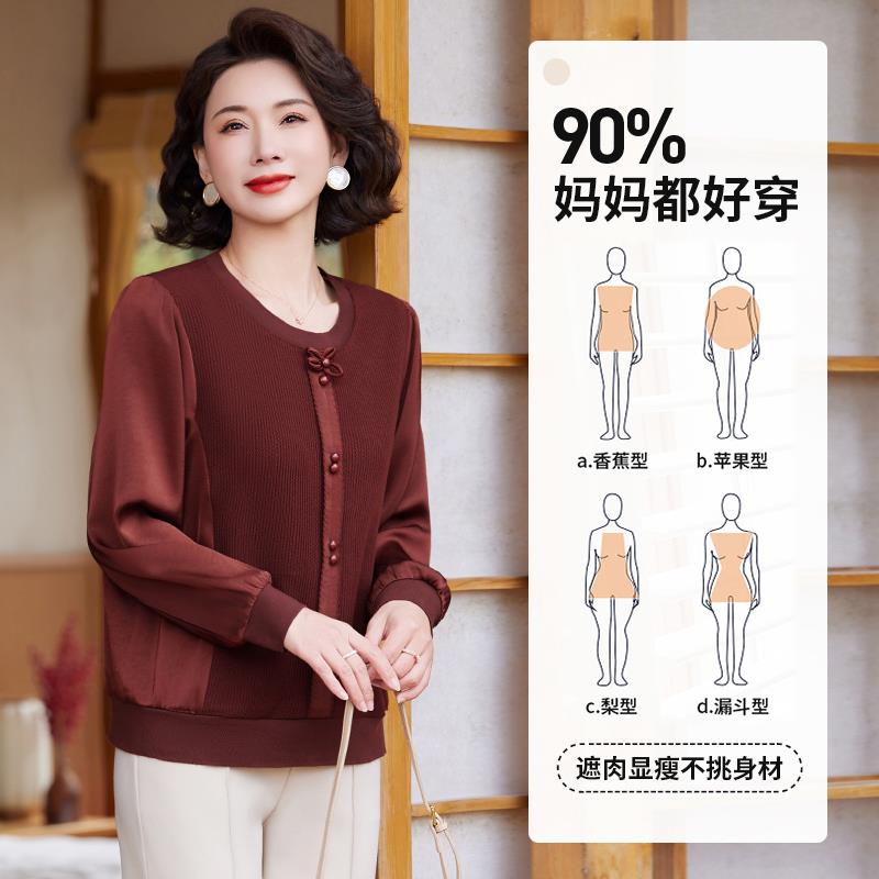 妈妈小衫春秋时尚洋气长袖T恤2025新款中老年女秋装针织打底上衣