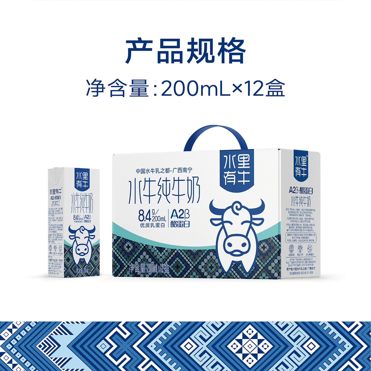 水里有牛广西水牛纯牛奶A2β-酪蛋白200ml*12盒儿童学生成人早餐