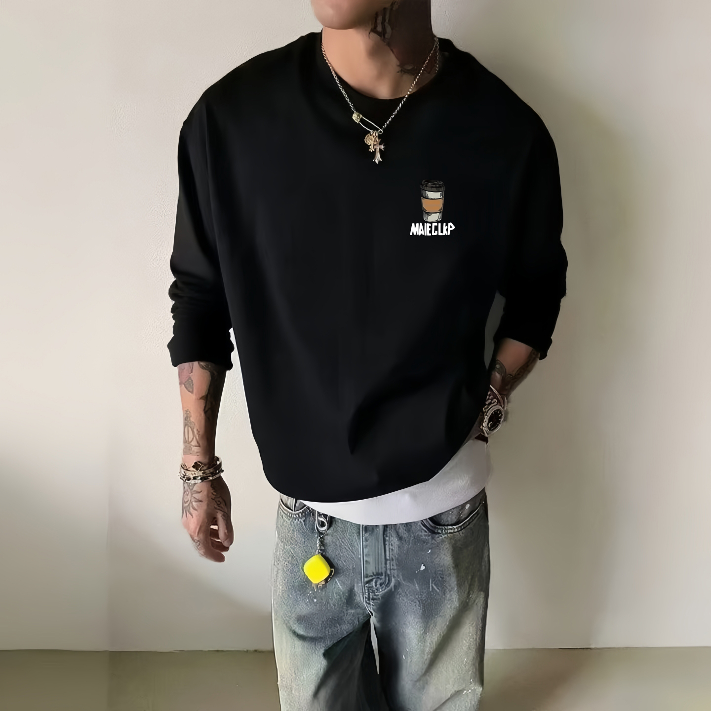 新款纯棉长袖T恤男士2025年秋季潮牌休闲圆领打底衫印花上衣男装