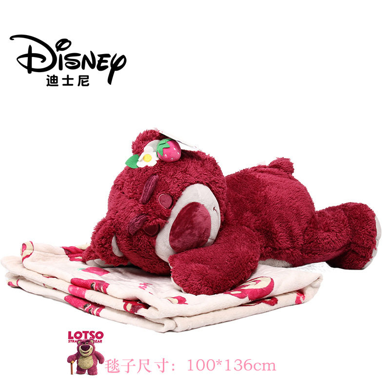 迪士尼草莓熊玩偶毛毯二合一礼物
