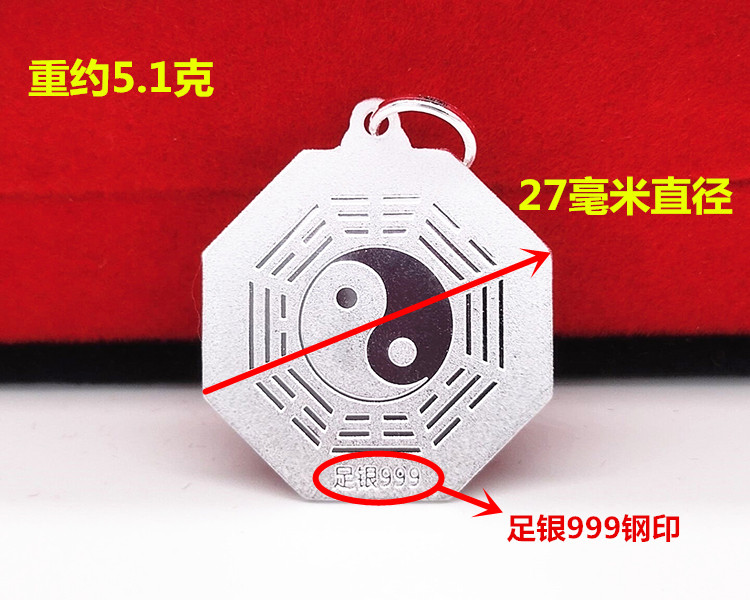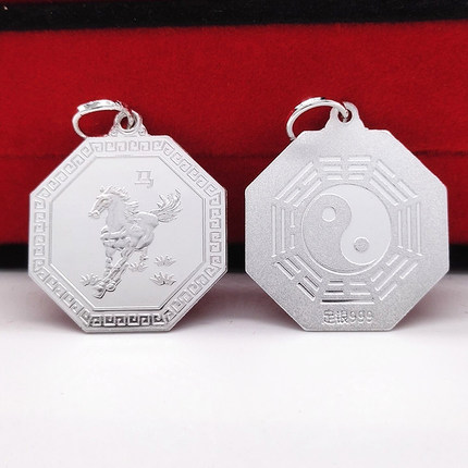 十二生肖九宫八卦纯银吊坠999足银太极八卦牌鼠牛虎兔蛇马羊猴鸡