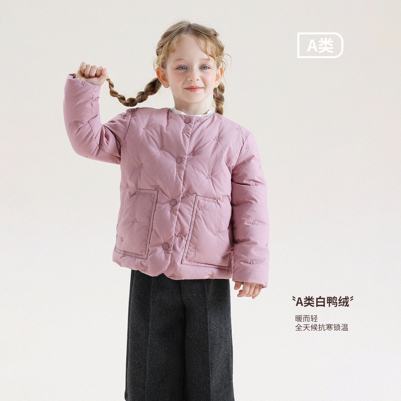 允儿妈女童冬季百搭绣花羽绒外套