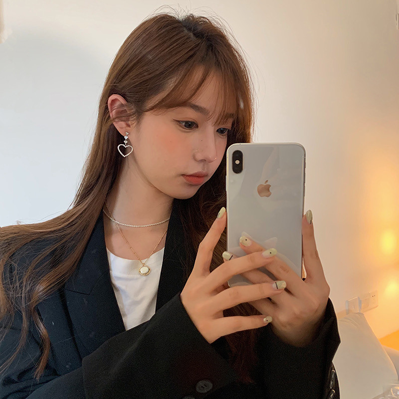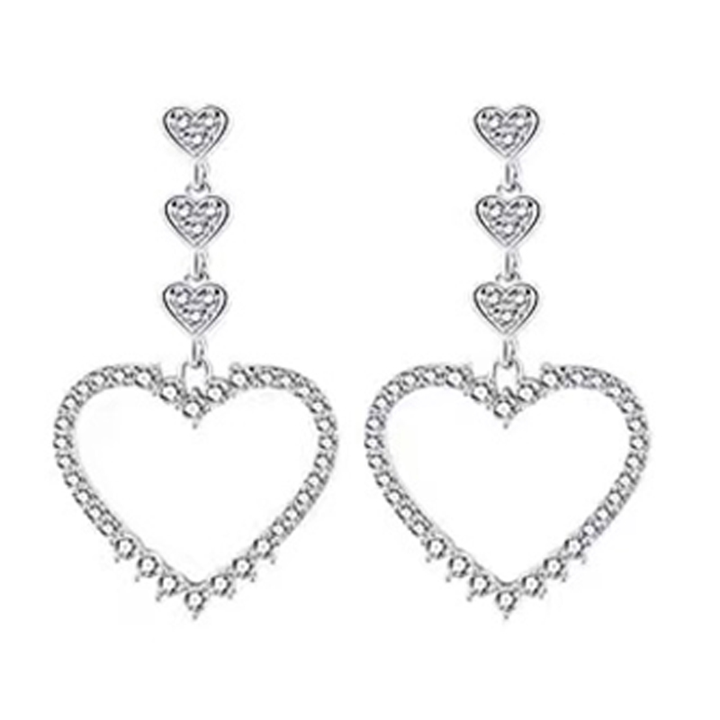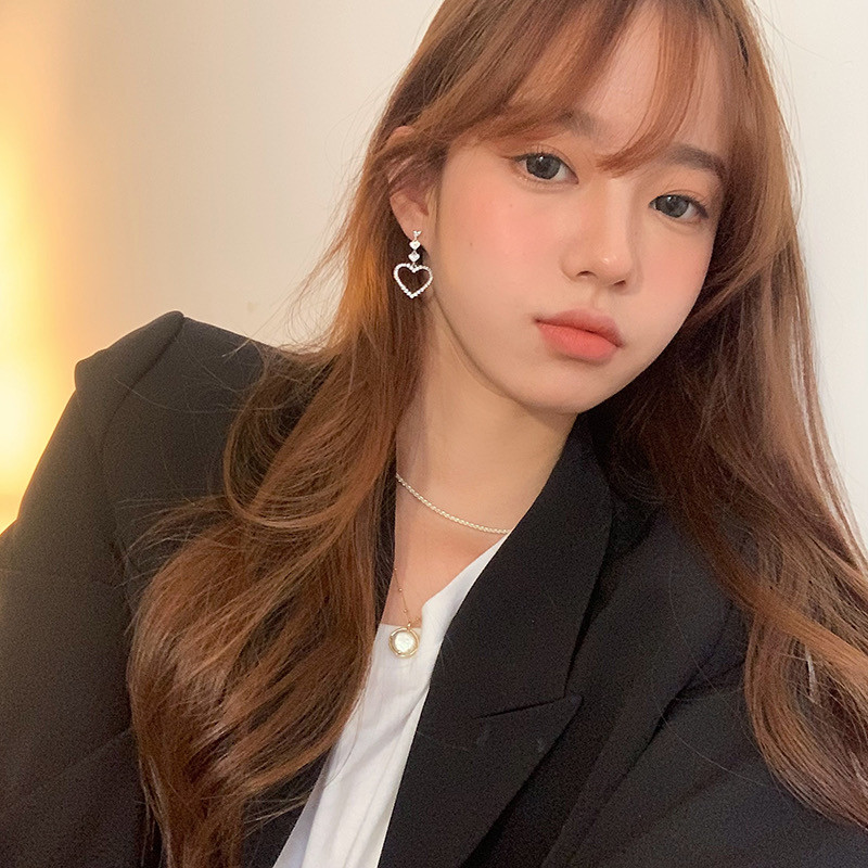 仙女微镶锆水钻镂空爱心耳环高级感耳饰耳钉女ins风耳夹新款银色