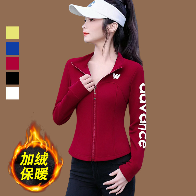 加绒冬新款广场舞上衣运动跑步健身跳操跳舞服装立领薄绒长袖外套