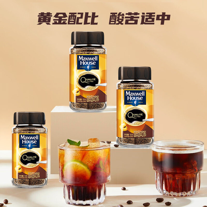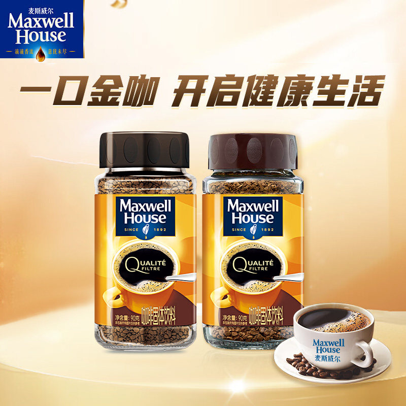 麦斯威尔黑咖啡小金瓶90g/瓶英国进口冷萃冻干咖啡粉速溶