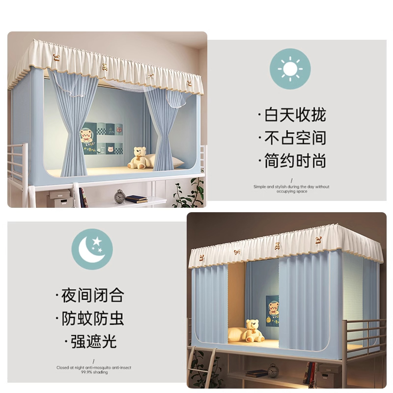 2025新款学生宿舍蚊帐遮光床帘一体式寝室上下铺专用单人全包床幔
