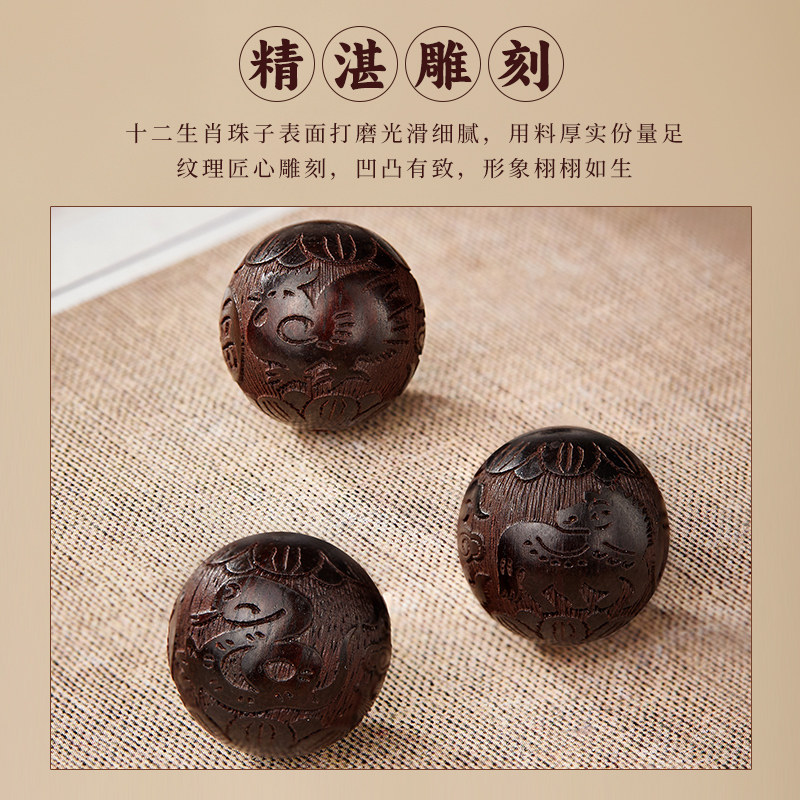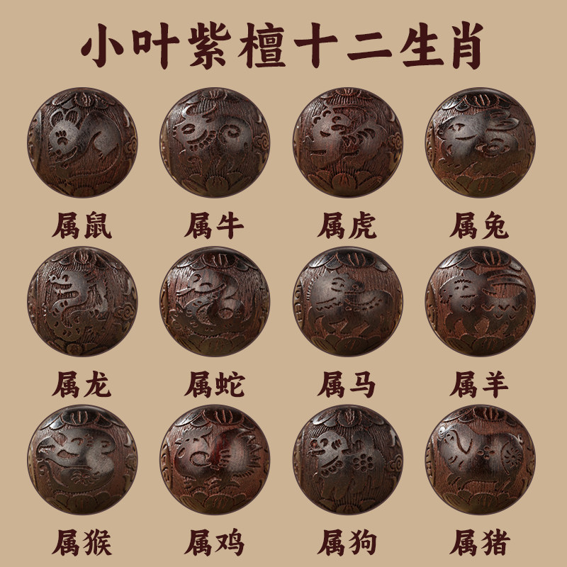 小叶紫檀手串男士文玩十二生肖本命佛转运珠檀木木作佛珠盘玩真品