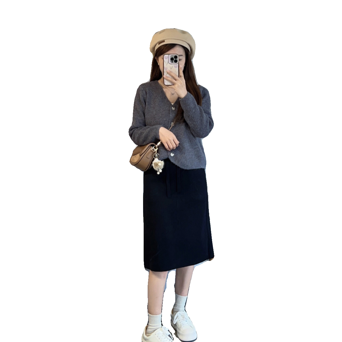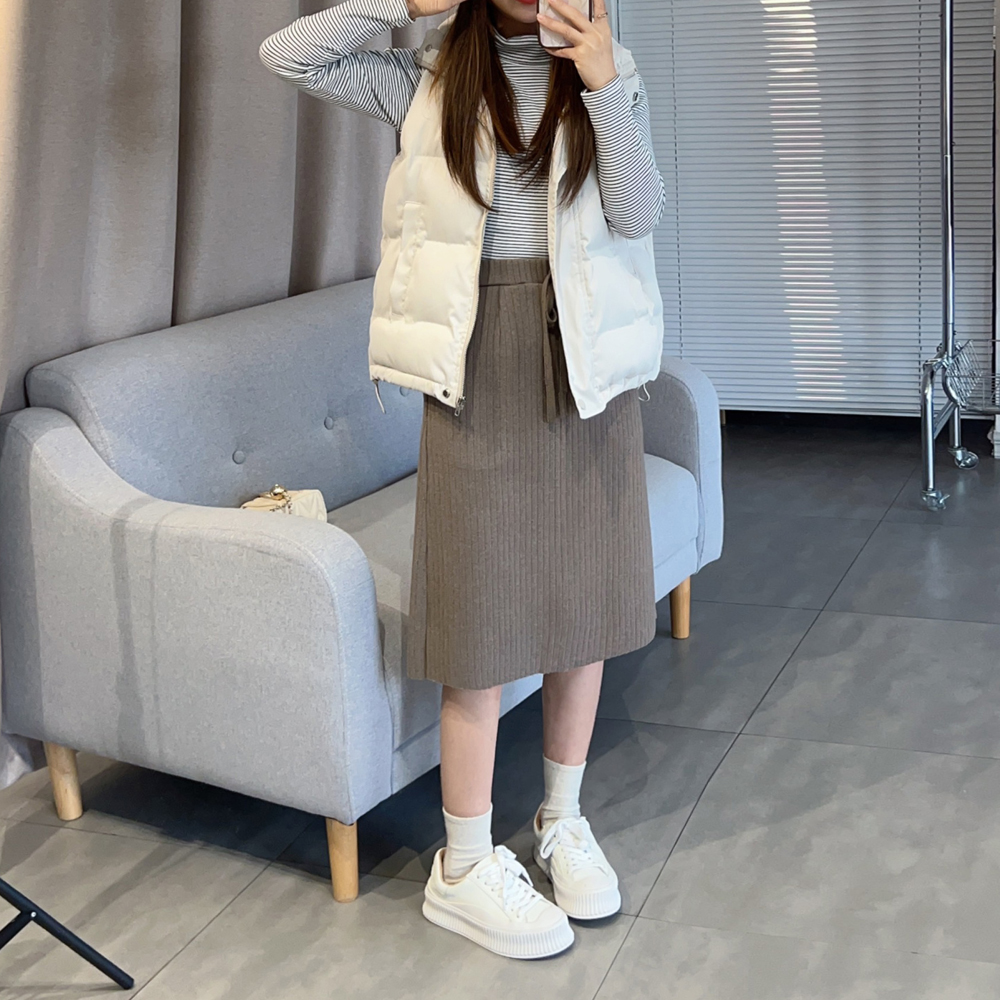 小个子中长裙A字休闲后开叉毛呢