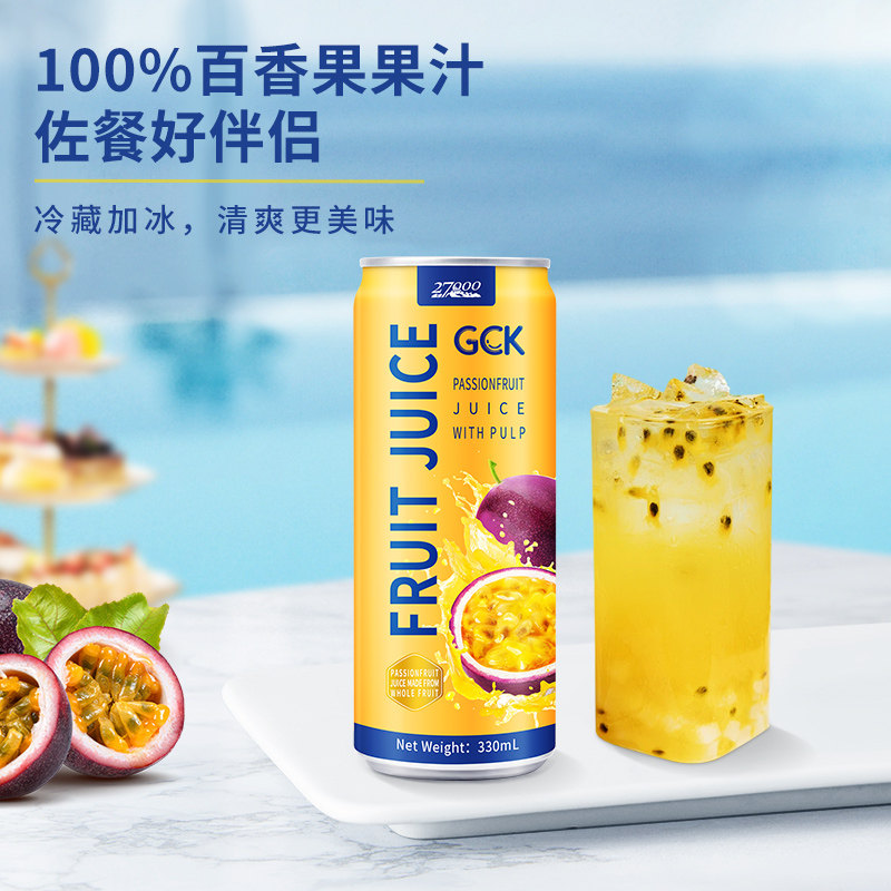 【进口】27000GCK越南100%百香果果汁(含果肉)330ml*12瓶饮料