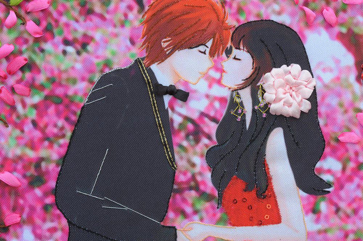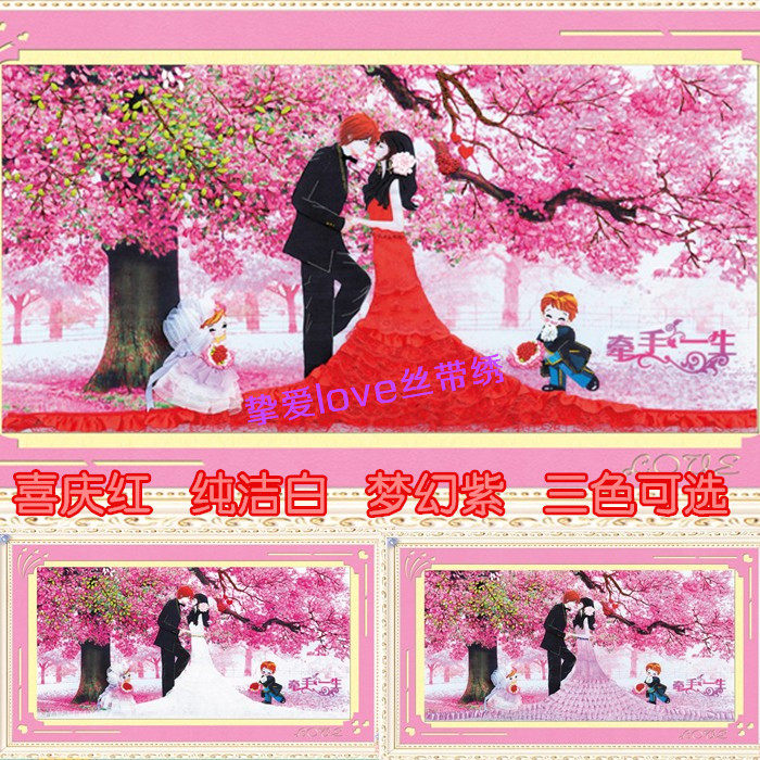 彩印新款丝带绣客厅卧室婚庆喜庆礼物挂画浪漫立体绣新款非十字绣
