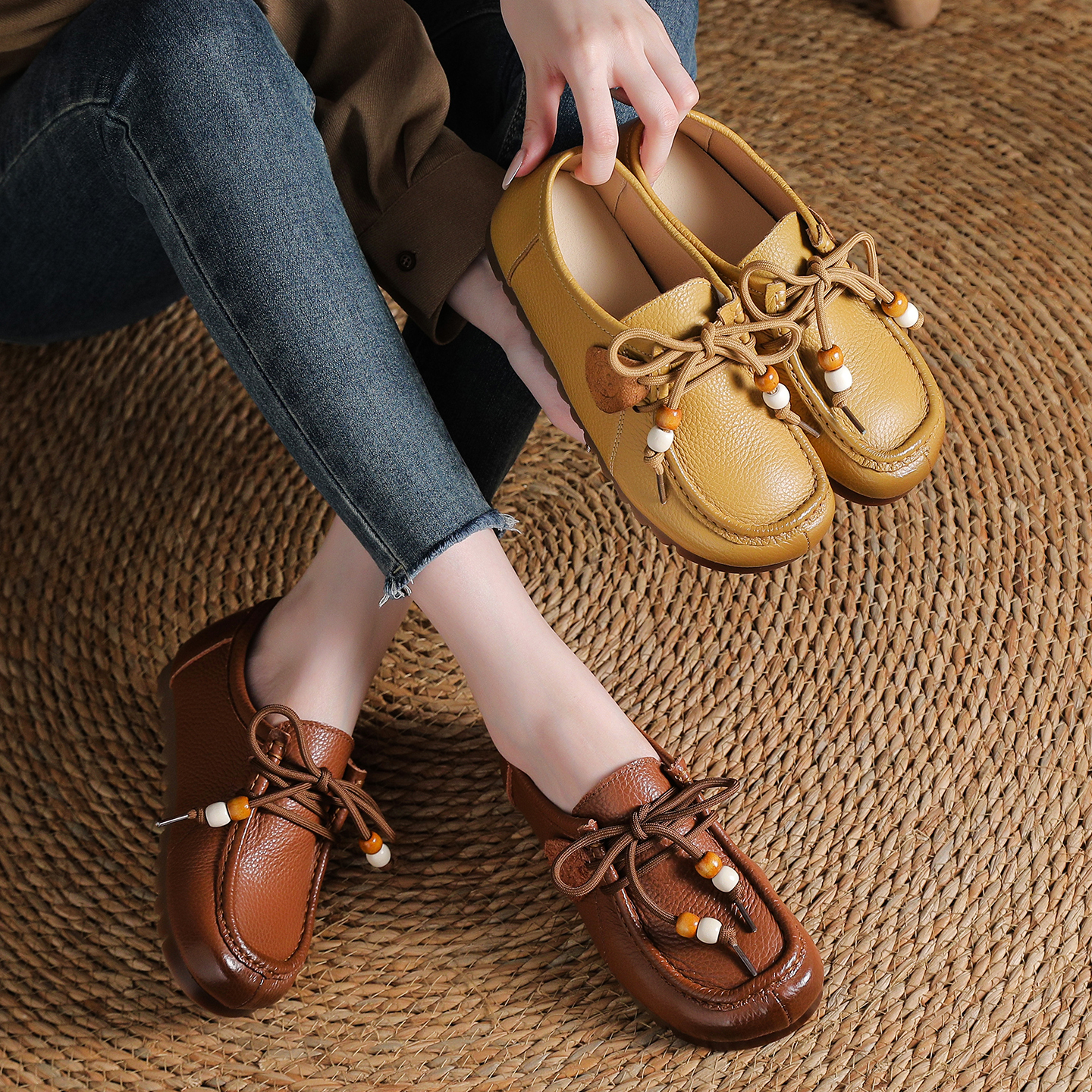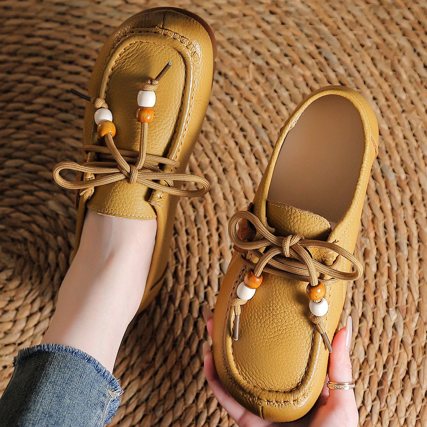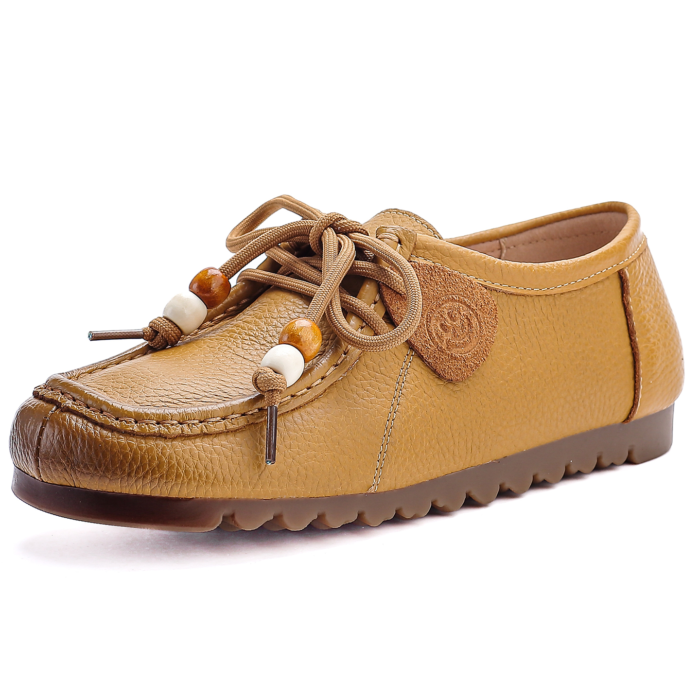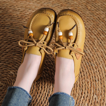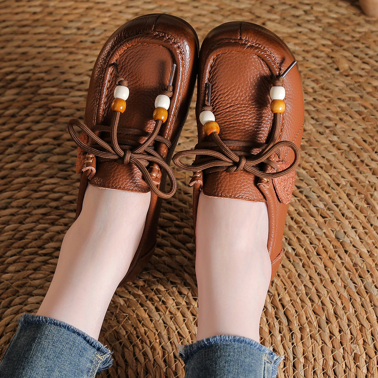 纯牛皮软底软面妈妈鞋休闲百搭小皮鞋复古女鞋平底单鞋真皮懒人鞋